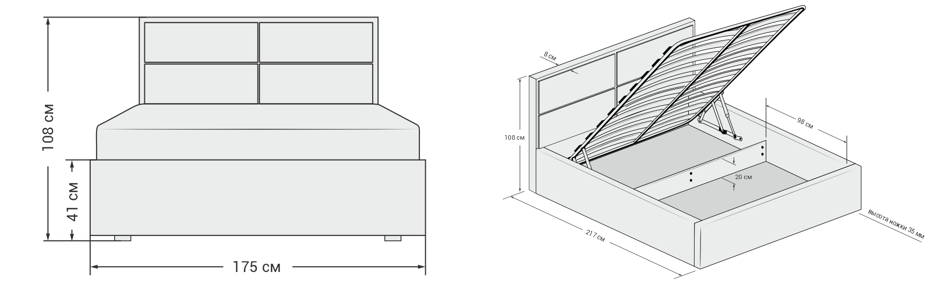 Мягкая спинка кровати удобна для чтения книг или просмотра сериалов перед сном, что добавляет дополнительный уровень комфорта. Декоративные ножки и мягкие углы не только придают кровати стильный вид, но и обеспечивают безопасность, предотвращая возможные травмы от случайных ударов. Наличие бельевого ящика с легко вынимаемым дном значительно упрощает процесс влажной уборки.