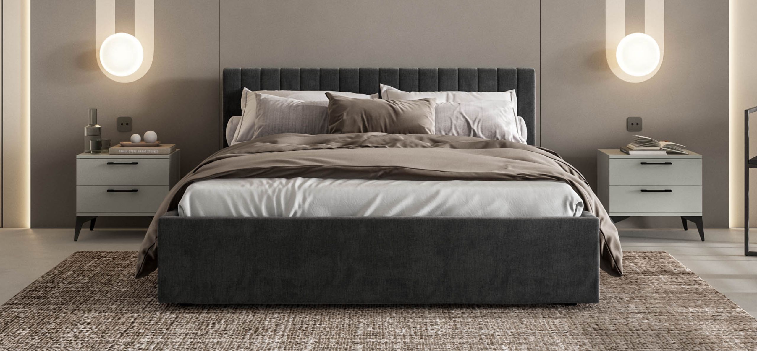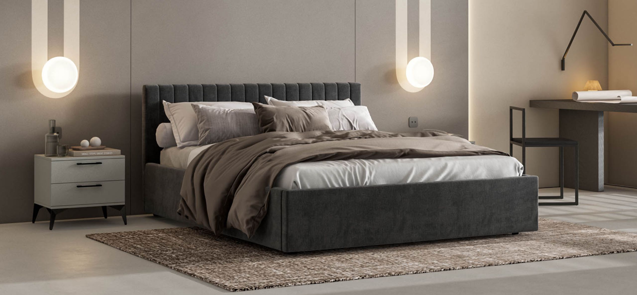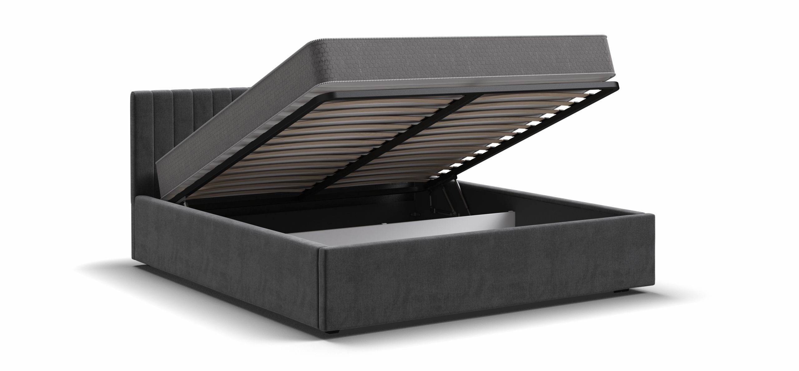 В кровати используются газлифты из авиационного алюминия SpaceLift, что обеспечивает легкость и надежность подъема. Скрытое отделение для хранения белья объемом 450 литров, HideBox, добавляет практичности и помогает поддерживать порядок в спальне.