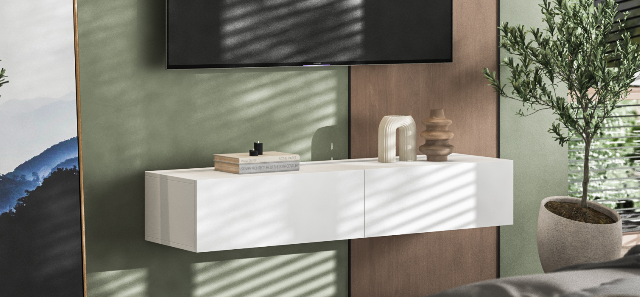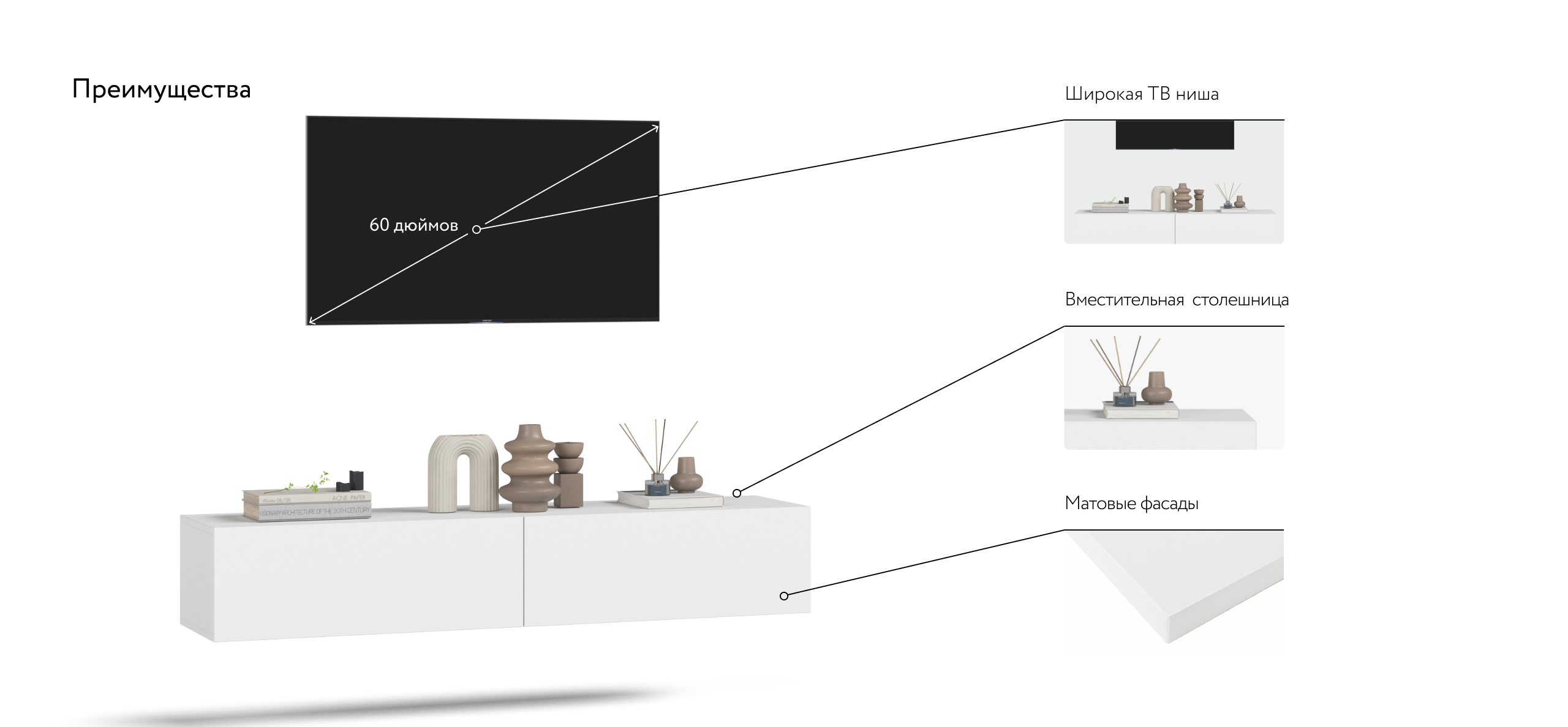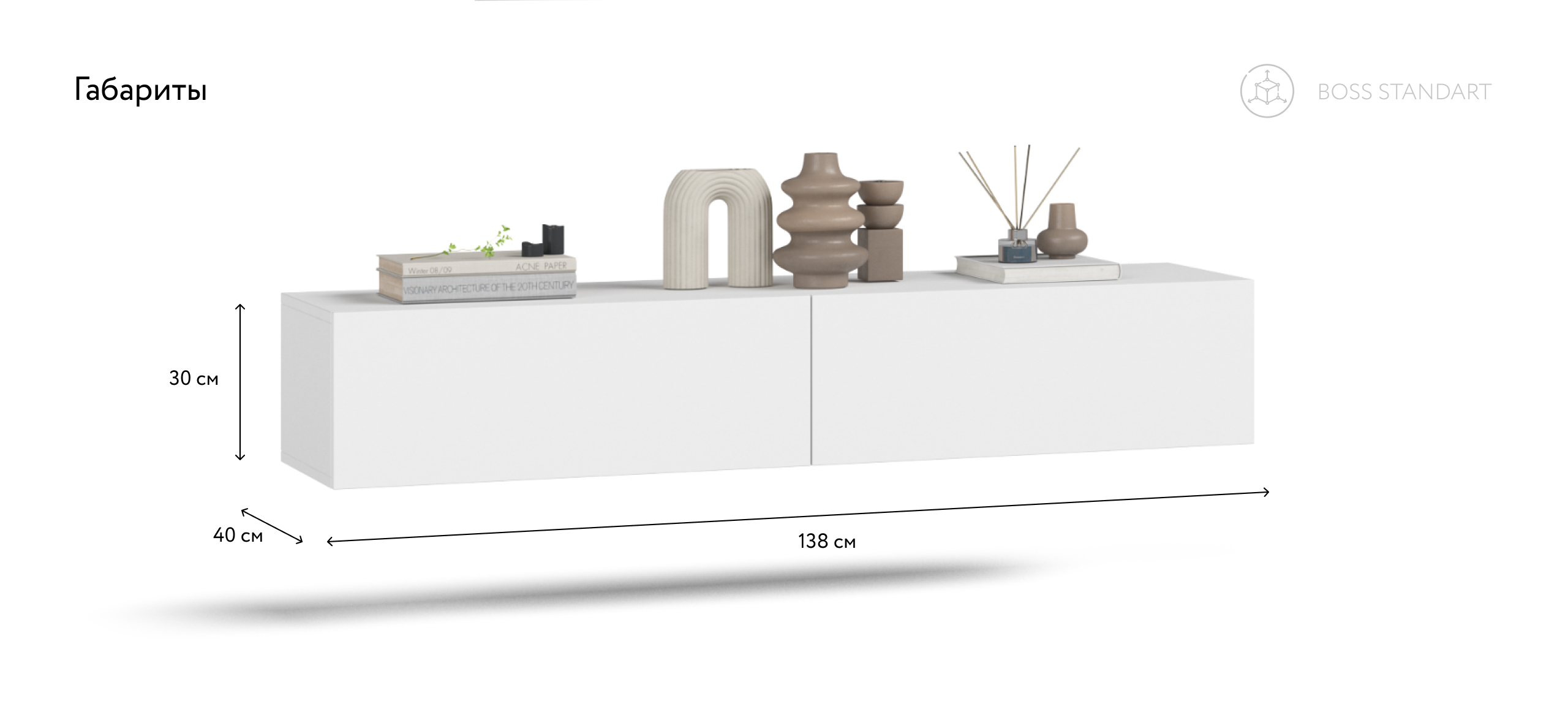 Вместительная ТВ тумба BOSS STANDART 140 с полностью закрытым хранением идеально подходит для хранения личных вещей, ТВ аксессуаров. Тумба оснащена фасадом с подъёмным механизмом, который плавно и бесшумно откидывается вниз, образуя доступ ко всему внутреннему пространству. ТВ Тумба оснащена системой Push-to –open, которая обеспечит легкое открывание дверцы одним нажатием.