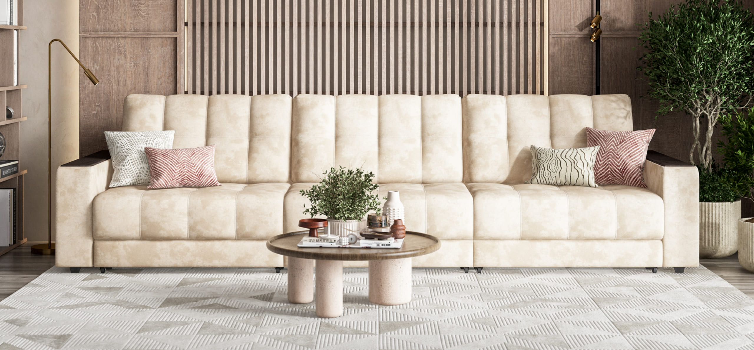 Диван BOSS GRAND - большой, стильный и комфортный диван, предназначенный для просторной комнаты. Продуманный до мелочей диван BOSS сочетает в себе надежный каркас, мягкие ткани, многофункциональность и быструю сборку за 1 минуту без инструментов - ощутите комфорт у себя дома!