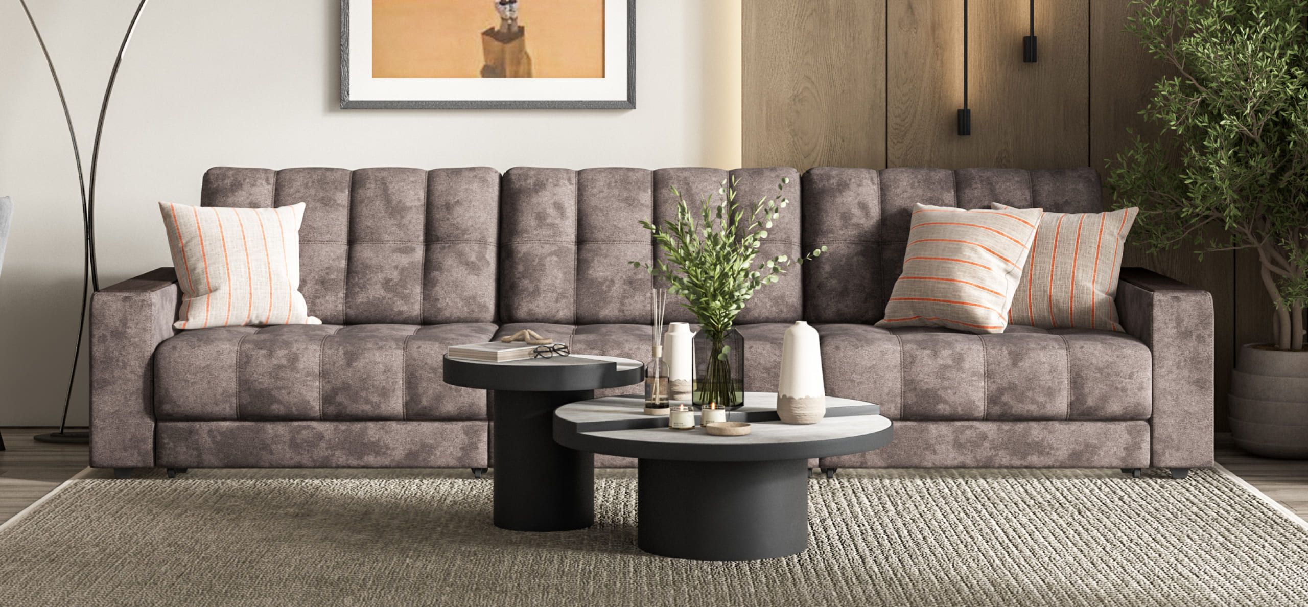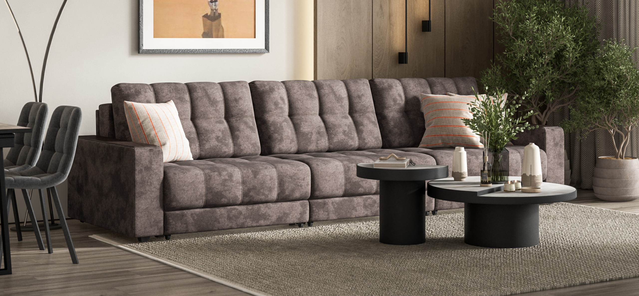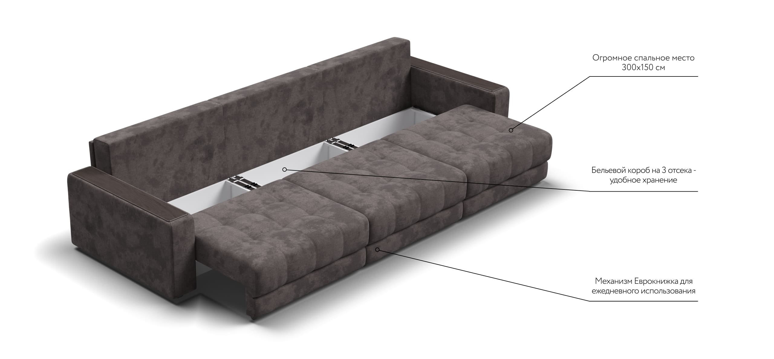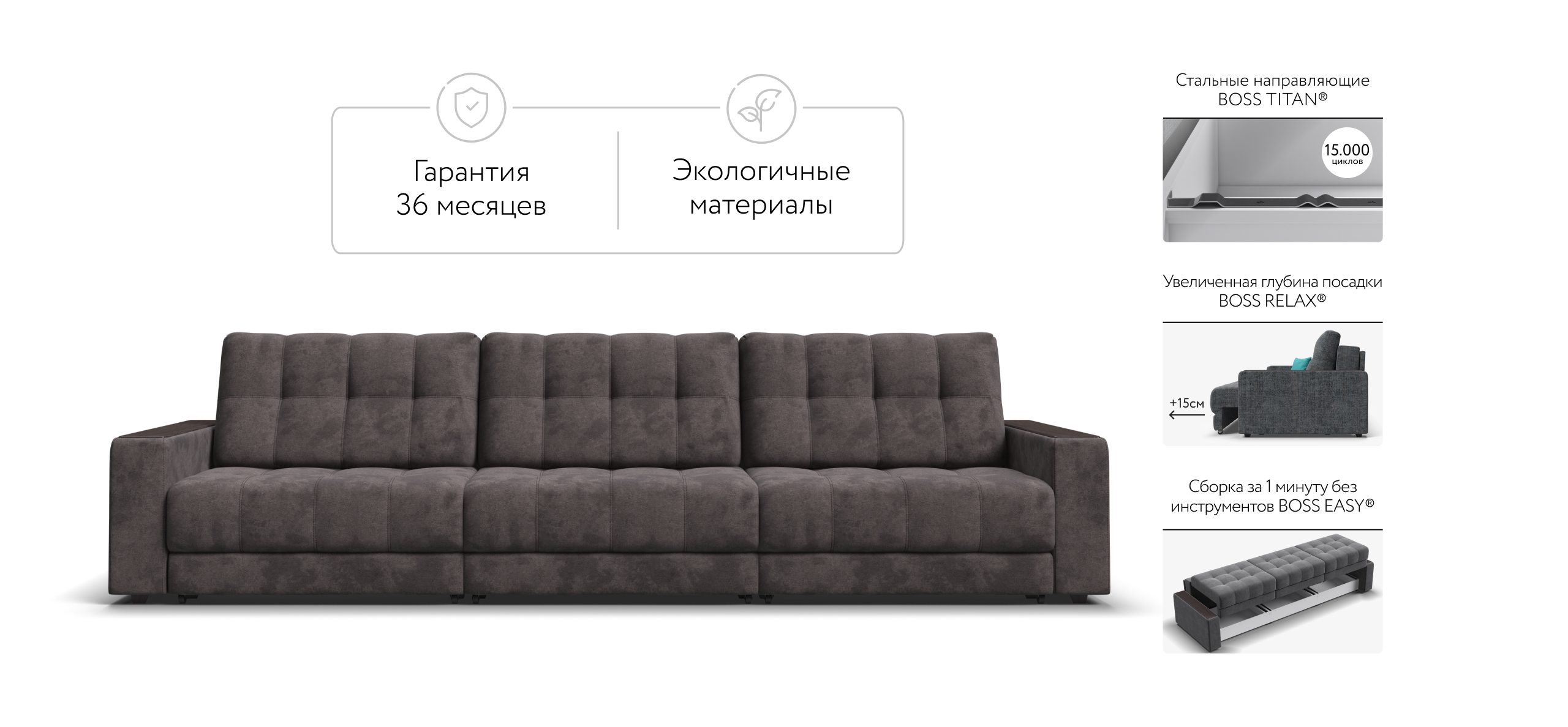 Диван BOSS GRAND - большой, стильный и комфортный диван, предназначенный для просторной комнаты. Продуманный до мелочей диван BOSS сочетает в себе надежный каркас, мягкие ткани, многофункциональность и быструю сборку за 1 минуту без инструментов - ощутите комфорт у себя дома!