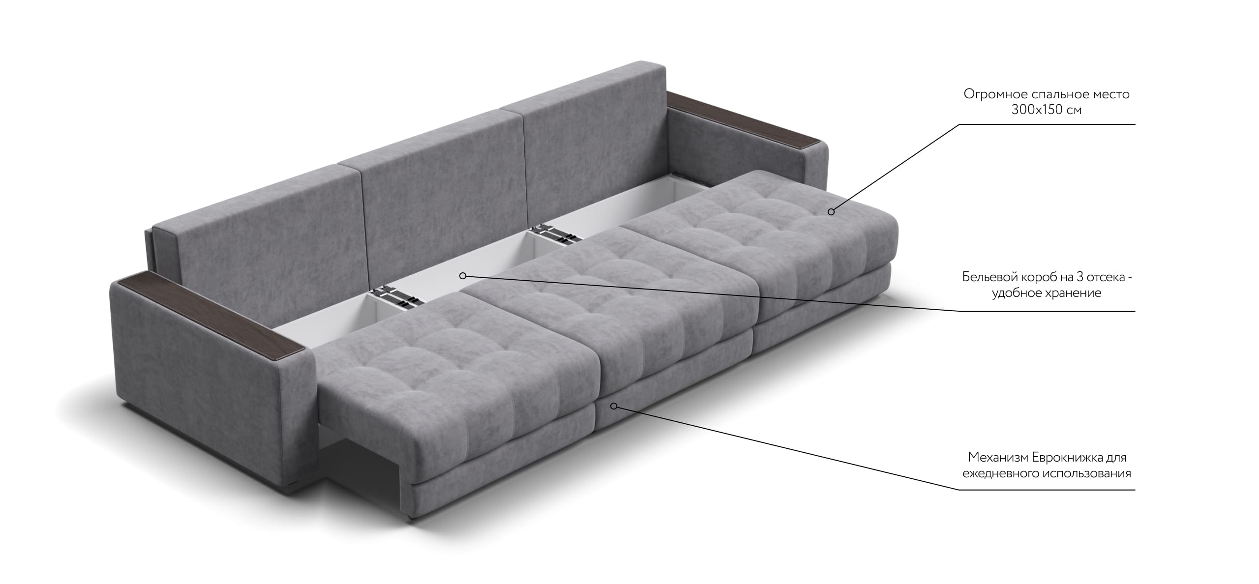 Простой и надежный механизм еврокнижка позволяет ставить диван вплотную к стене.
