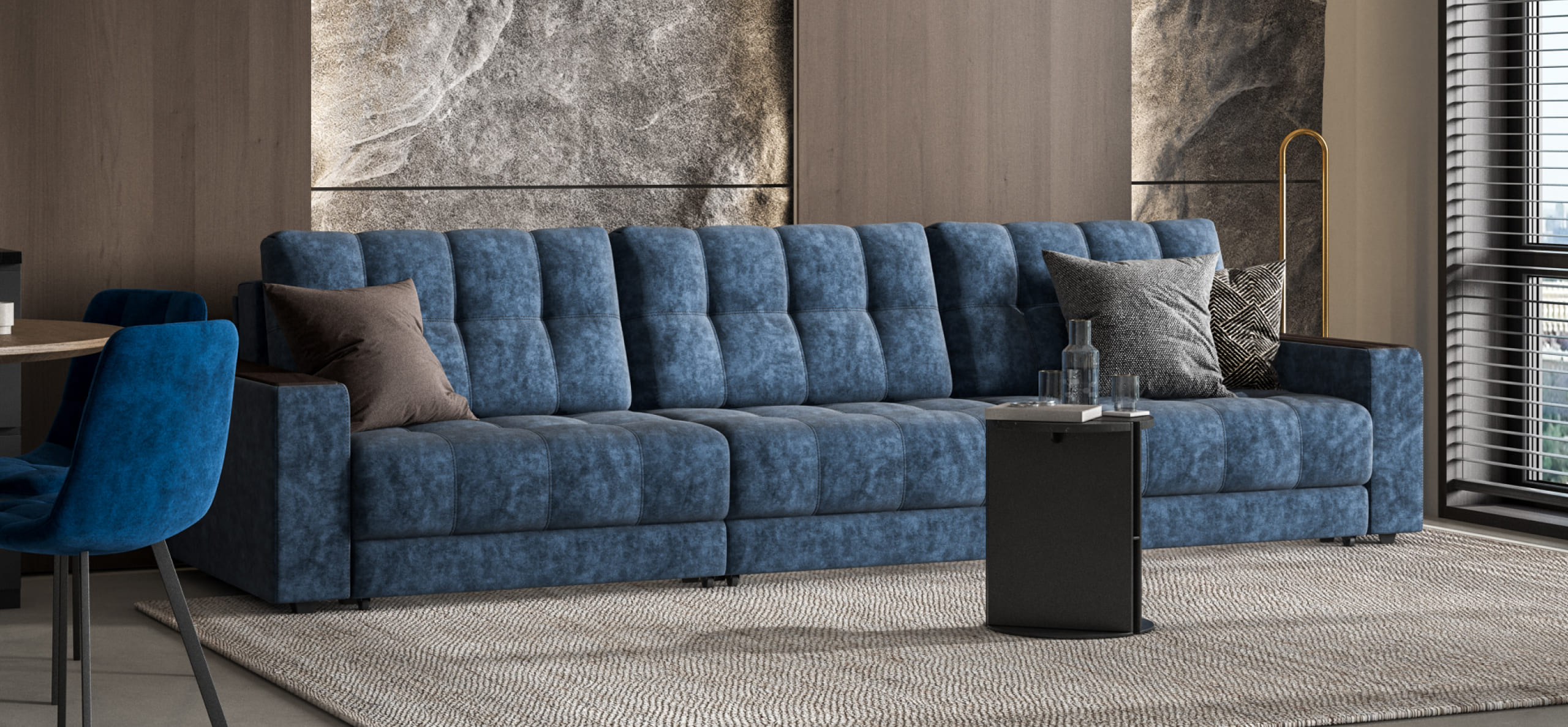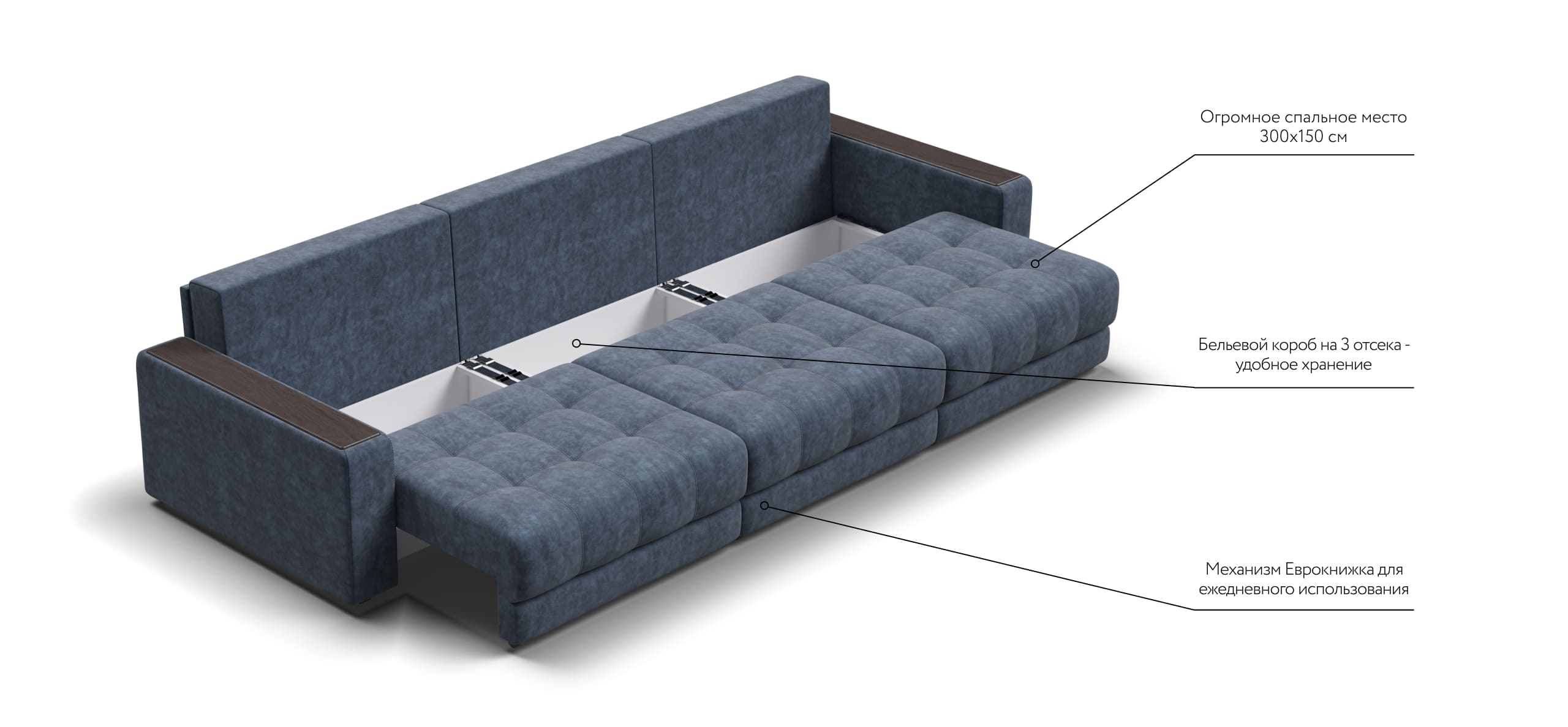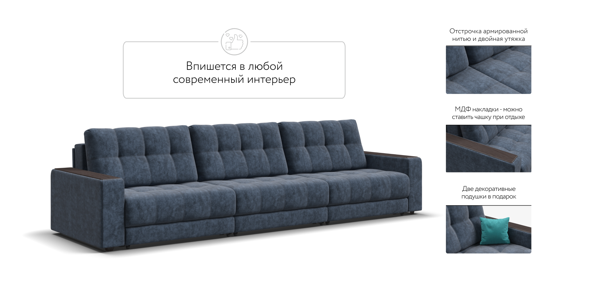 Диван BOSS GRAND - большой, стильный и комфортный диван, предназначенный для просторной комнаты. Продуманный до мелочей диван BOSS сочетает в себе надежный каркас, мягкие ткани, многофункциональность и быструю сборку за 1 минуту без инструментов - ощутите комфорт у себя дома!