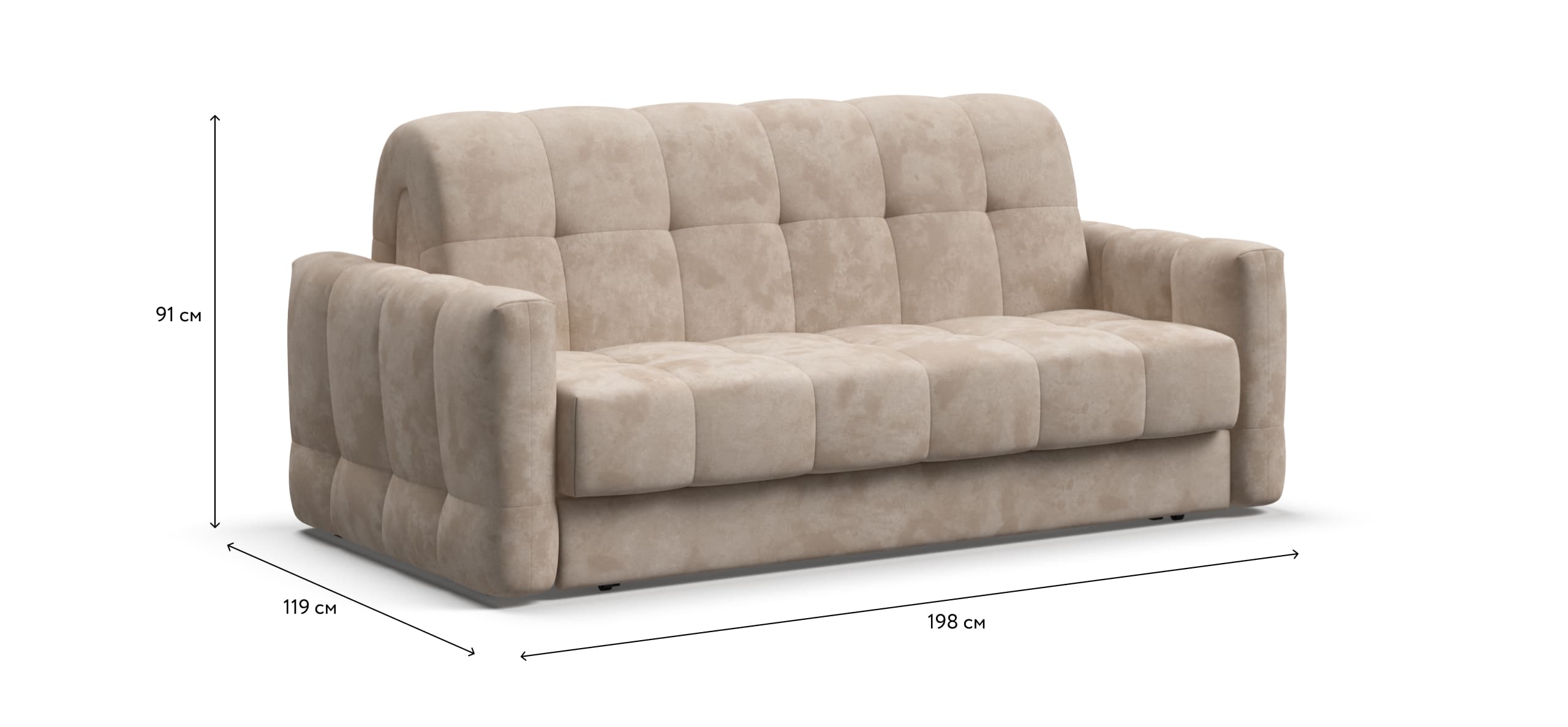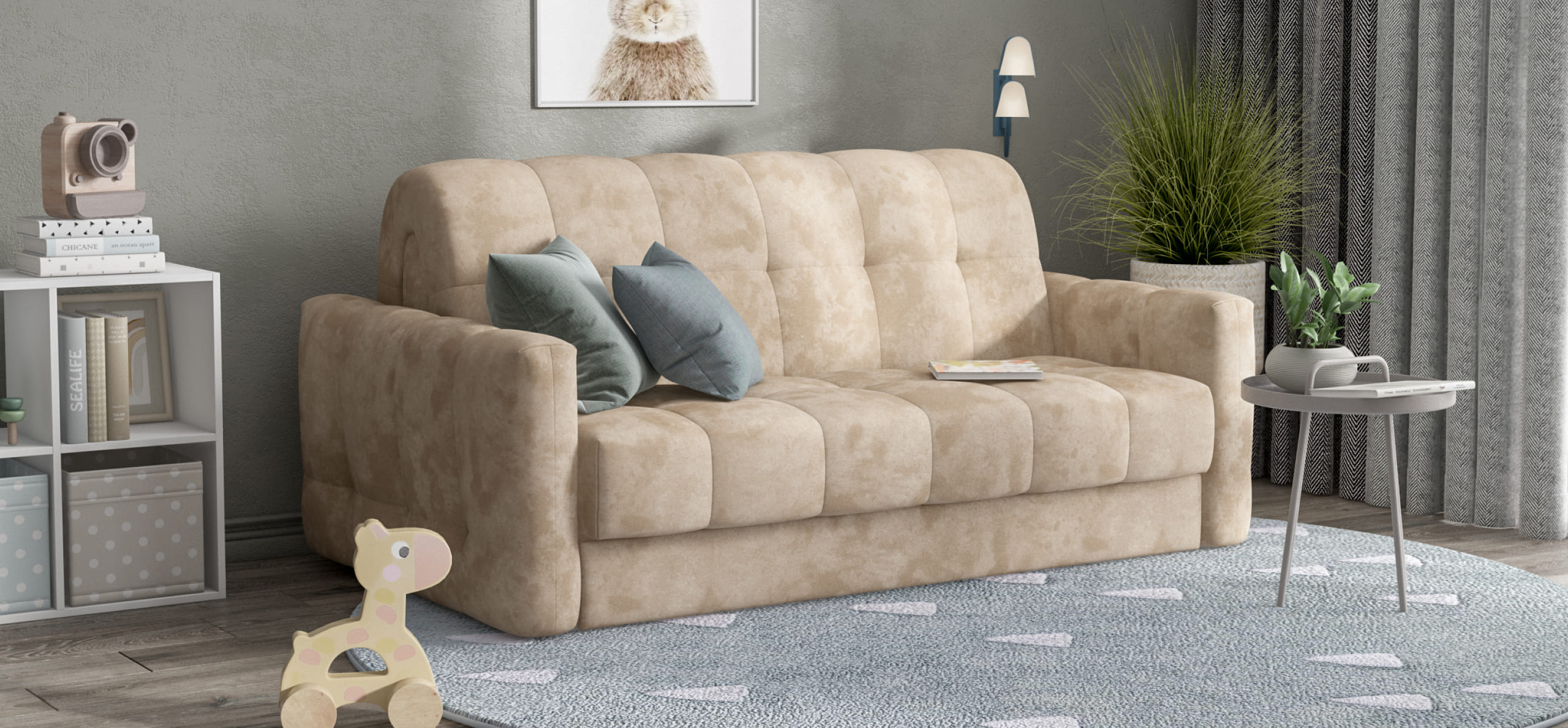 Мягкие декоративные вставки на боковых частях дивана закрывают механизм в сложенном и в разложенном виде, придавая дивану эстетичный внешний вид и безопасность при эксплуатации