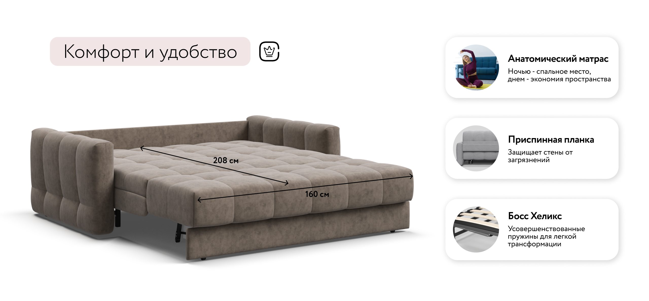 Диван BOSS Sleep 160 идеальное сочетание комфорта, функциональности и стиля в современном дизайне.
