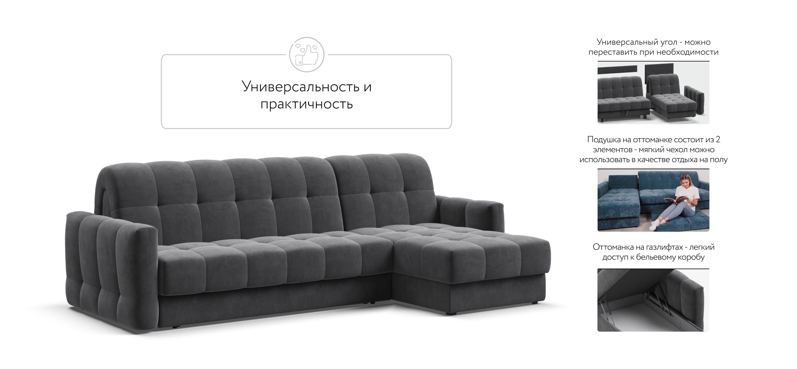 В комплекте с диваном идет бельевой короб BOSS Save и не нужно за него доплачивать, а также дополнительный короб в оттоманке!