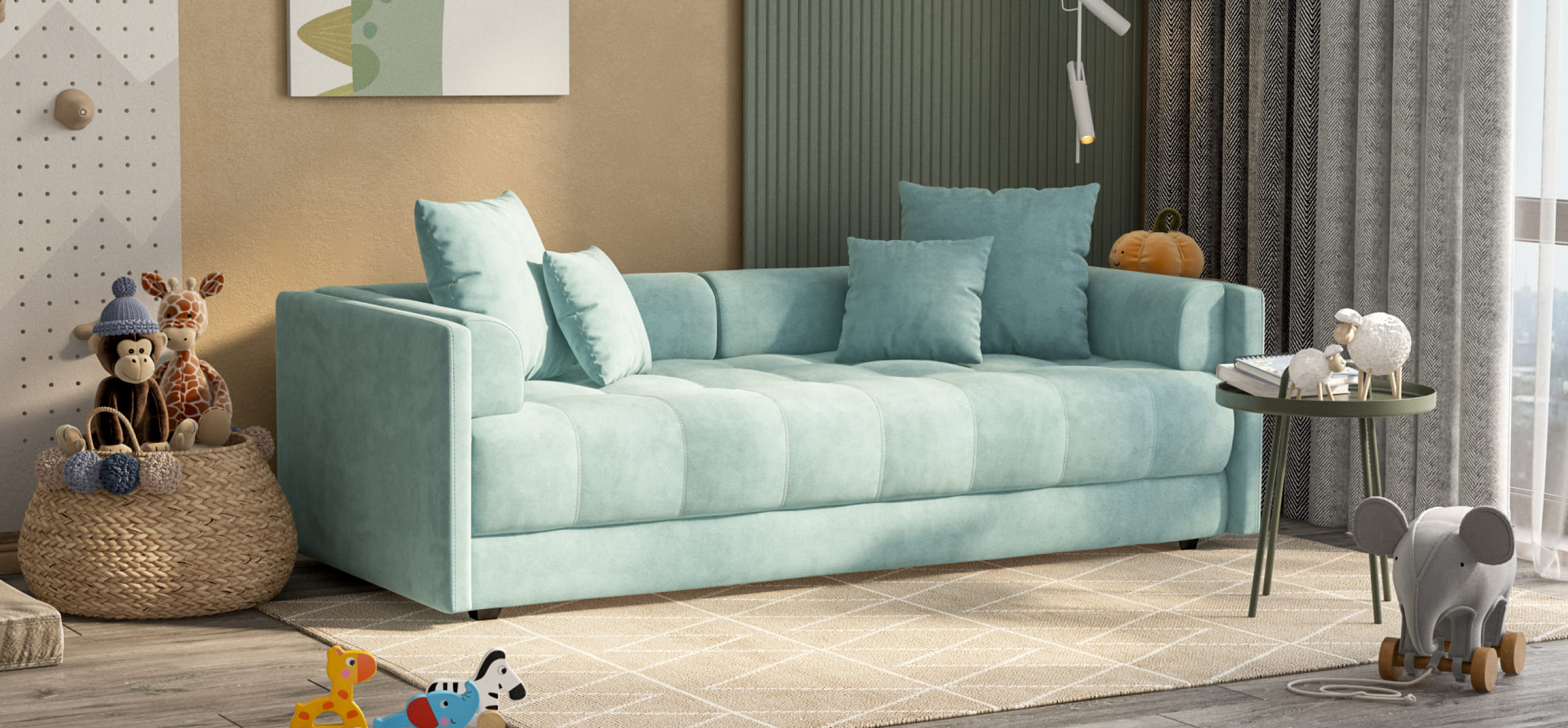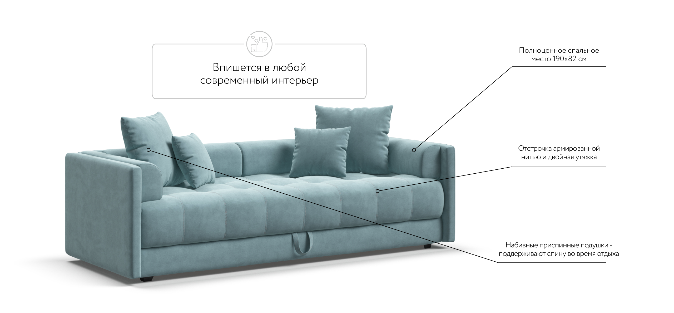 Декоративная строчка армированной нитью и двойная утяжка надолго сохранит внешний вид дивана.