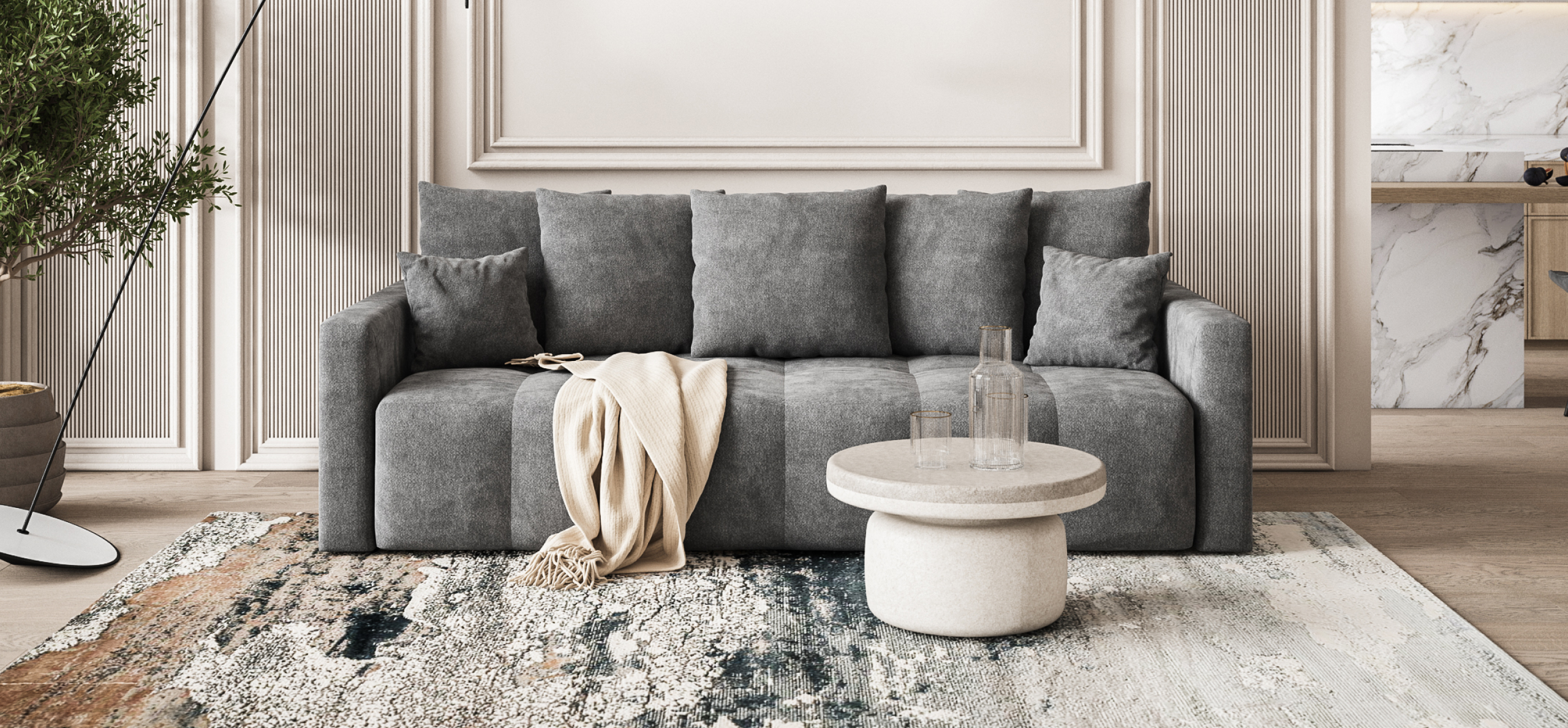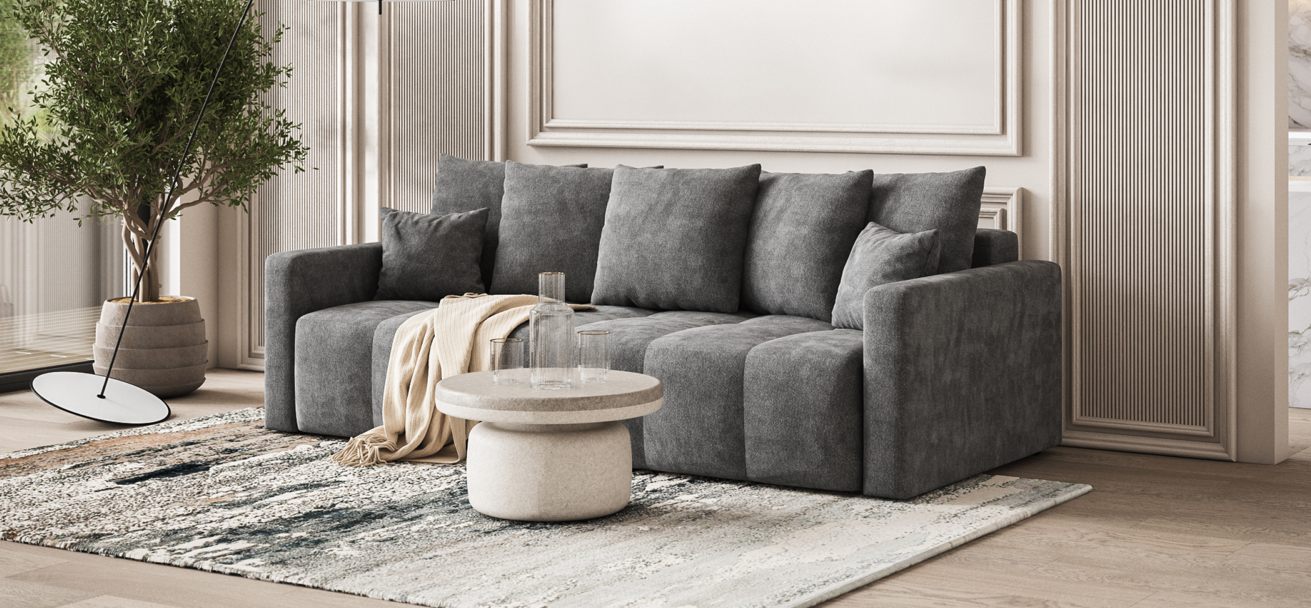 Простой и надежный механизм еврокнижка позволяет ставить диван вплотную к стене