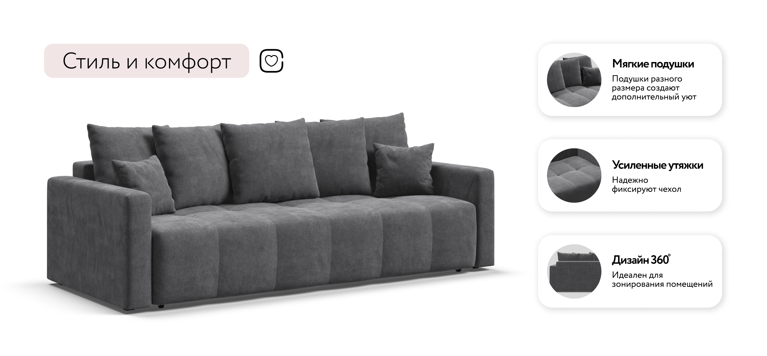 Мягкие приспинные подушки разного размера обеспечивают комфорт во время отдыха и создают дополнительный уют