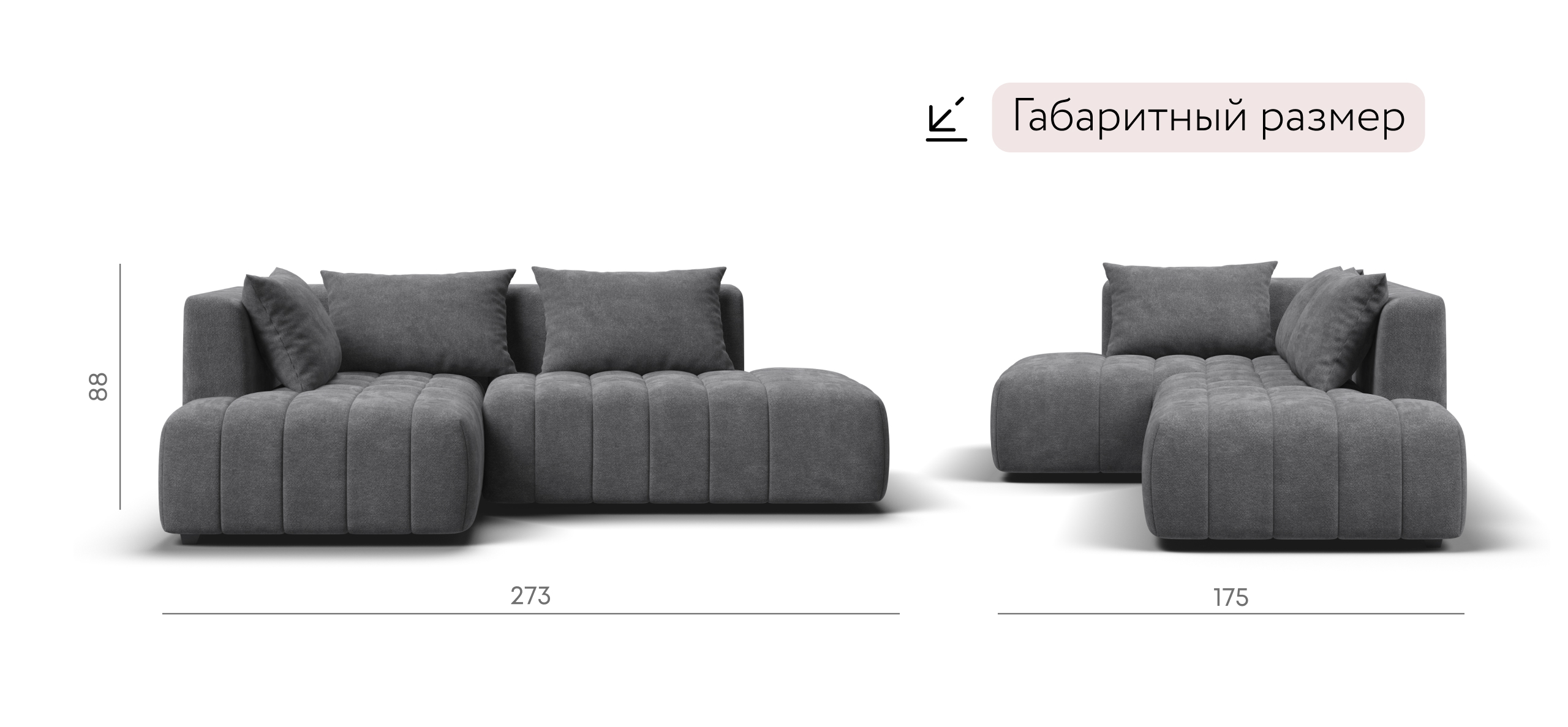 Босс Твин угловой диван левый Шенилл Клауд графит
