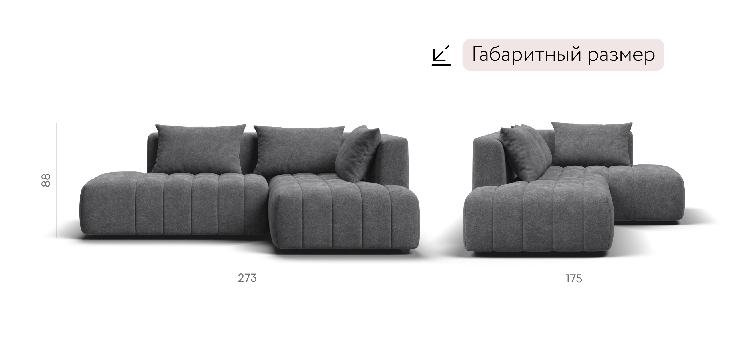 Босс Твин угловой диван правый Шенилл Клауд графит