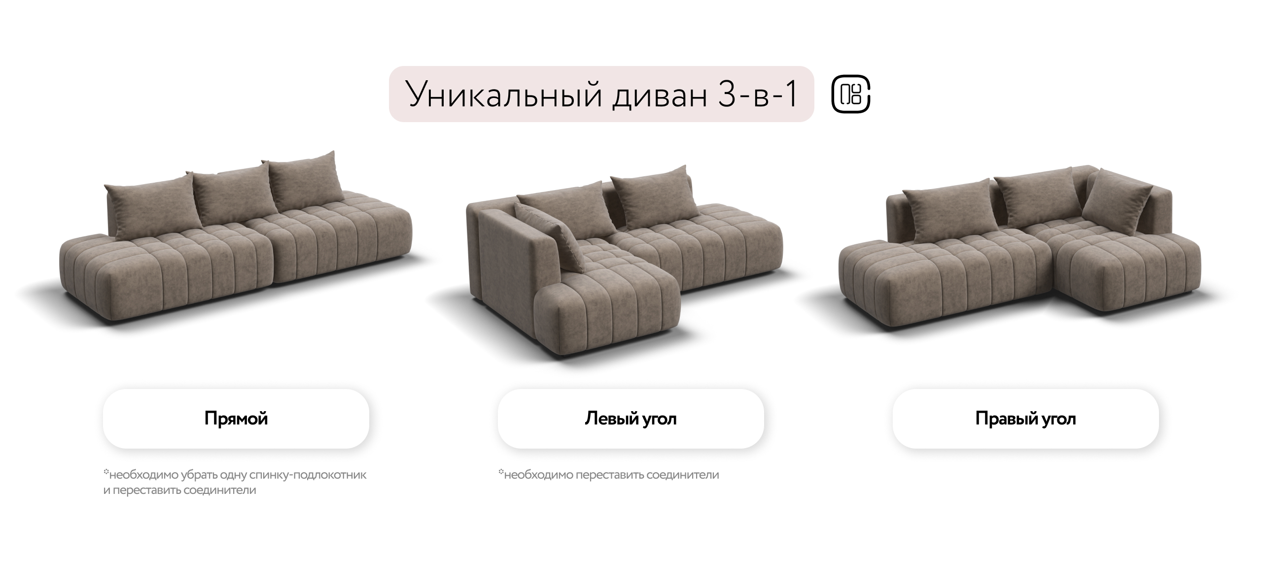 Уникальный диван 3-в-1: прямой, левый угол, правый угол