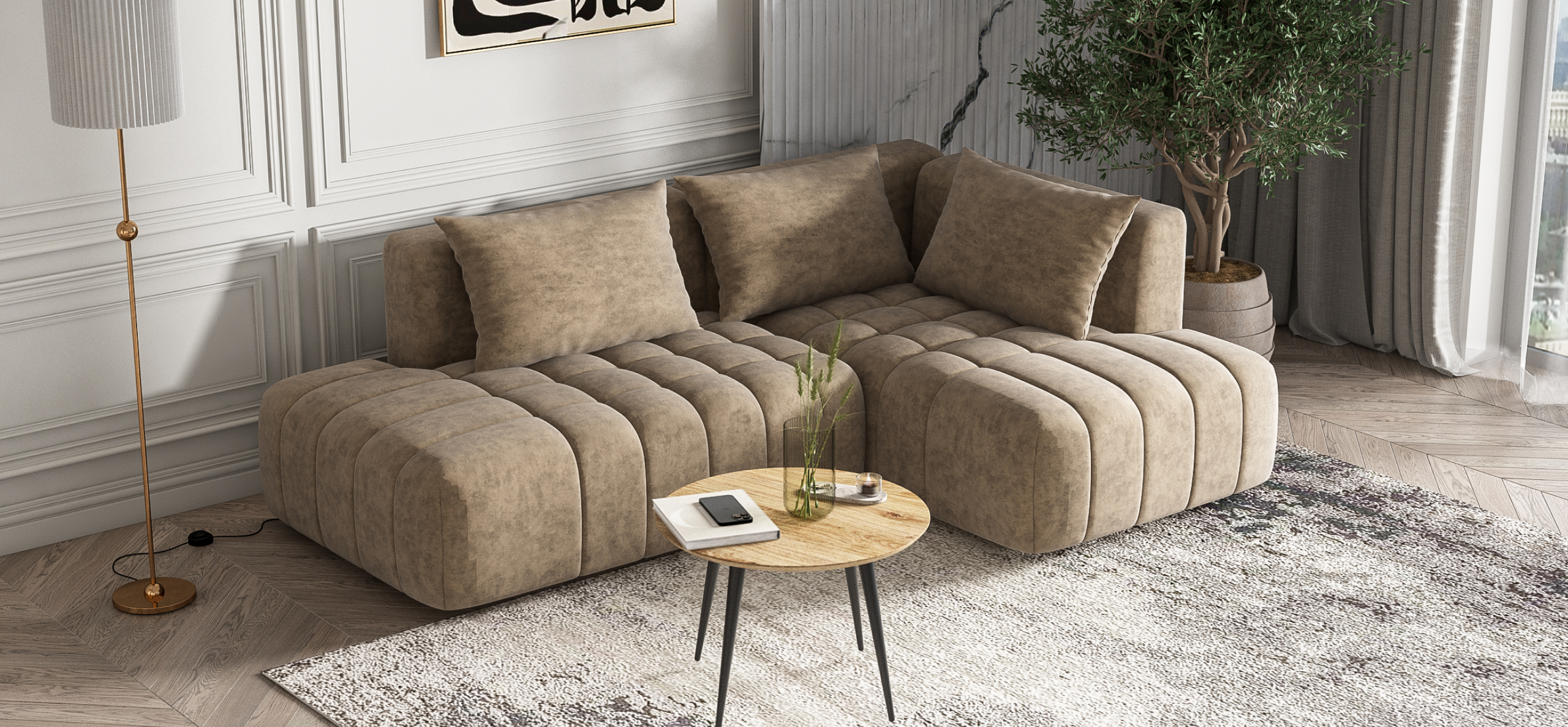 Босс Твин угловой диван правый Велюр Роял тауп