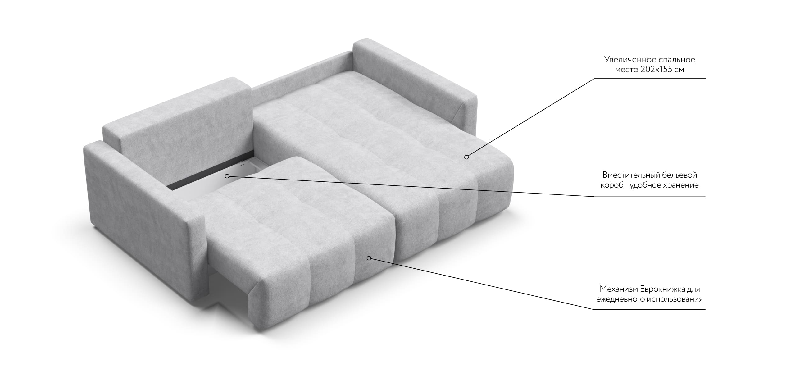 Широкая оттоманка BOSS Loveseat - с комфортом разместит двух человек. Независимый пружинный блок в основании и механизм еврокнижка превращают диван в комфортное спальное место с анатомическим эффектом.