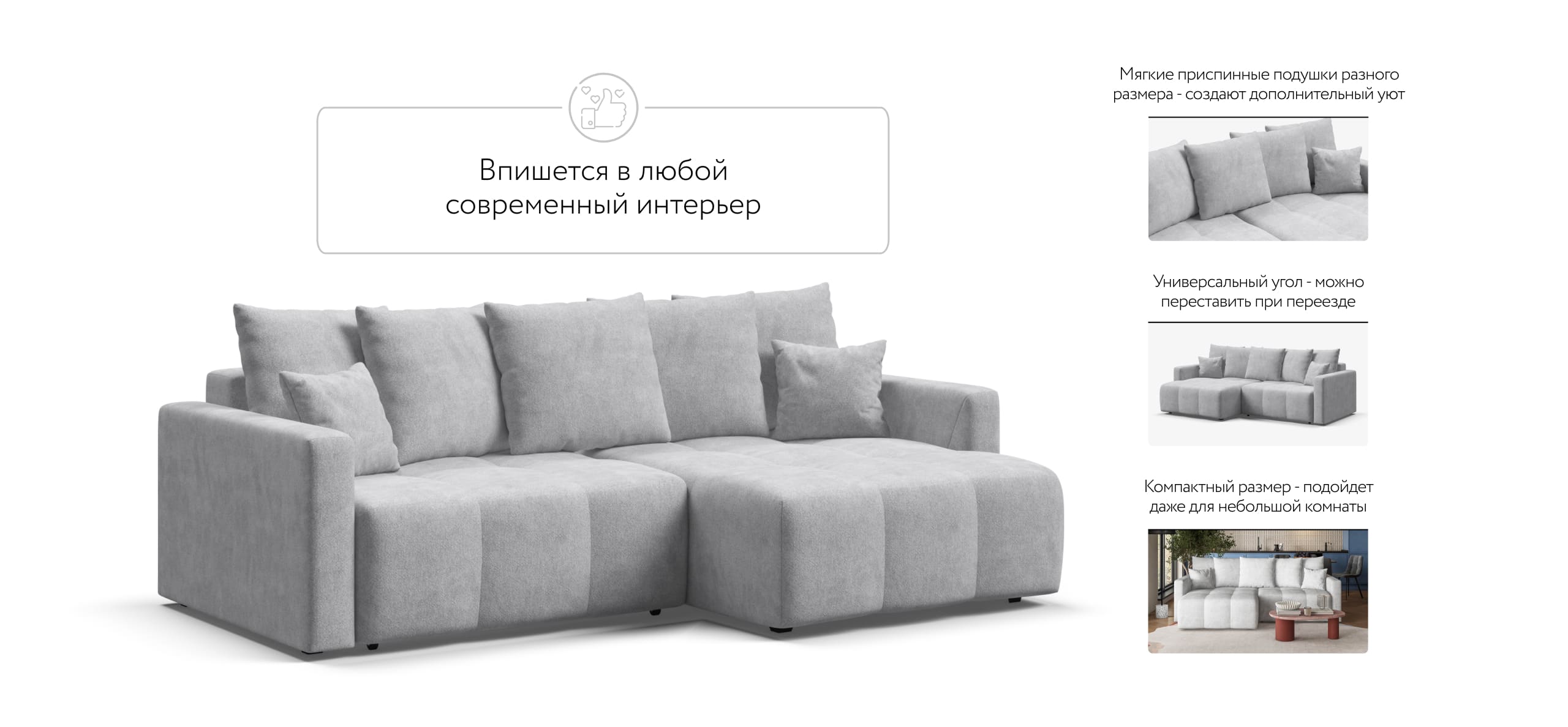 Угловой диван BOSS TREND Шенилл CLOUD грей