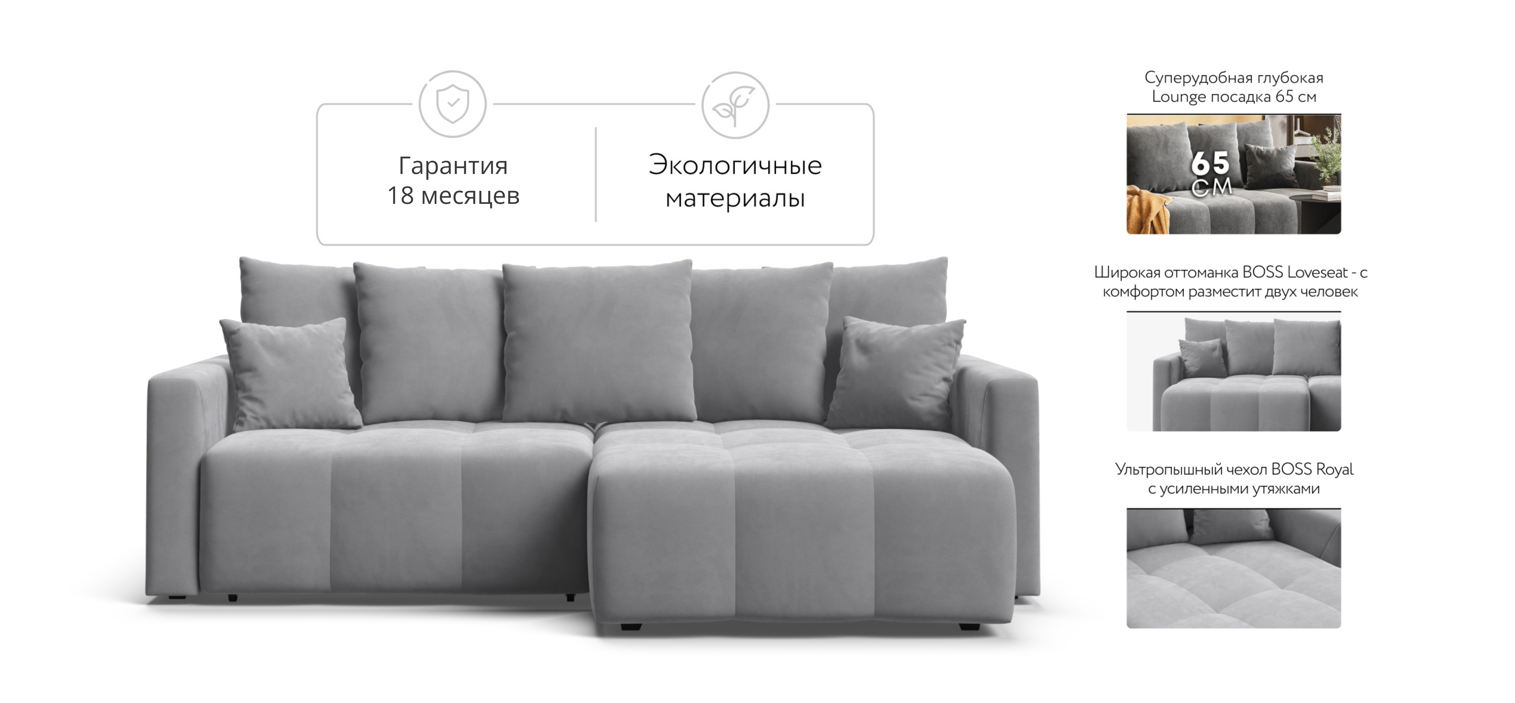 Суперудобная  глубокая посадка, мягкие приспинные подушки и чехол BOSS Royal с ультропышной стежкой на холконе  создают максимальный комфорт при отдыхе.