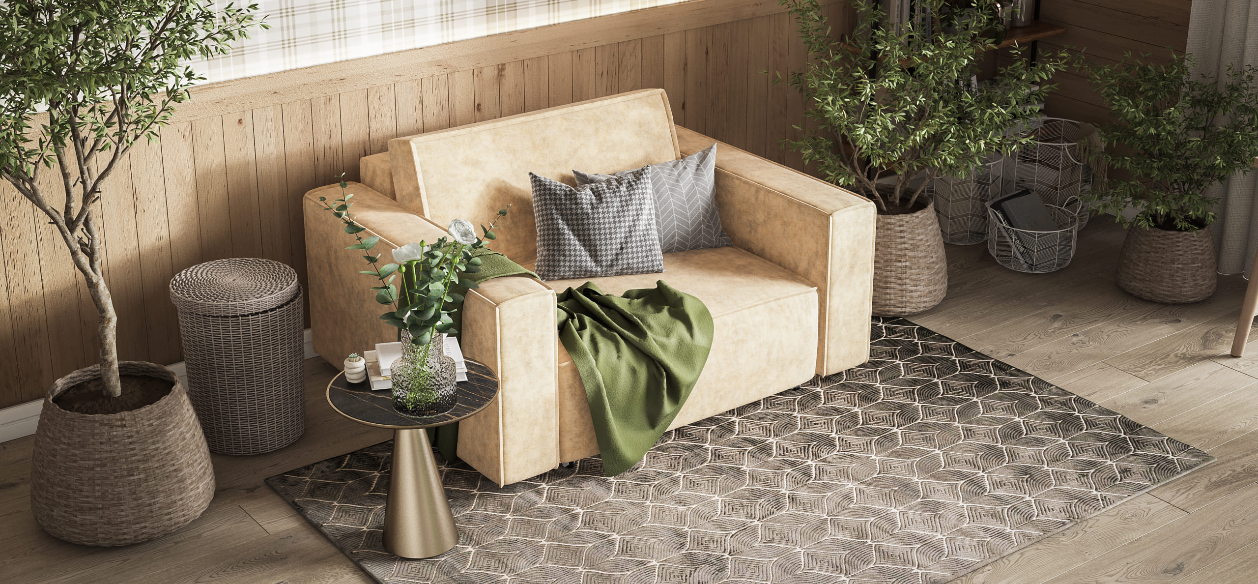 Широкие мягкие подлокотники создают особый комфорт во время отдыха