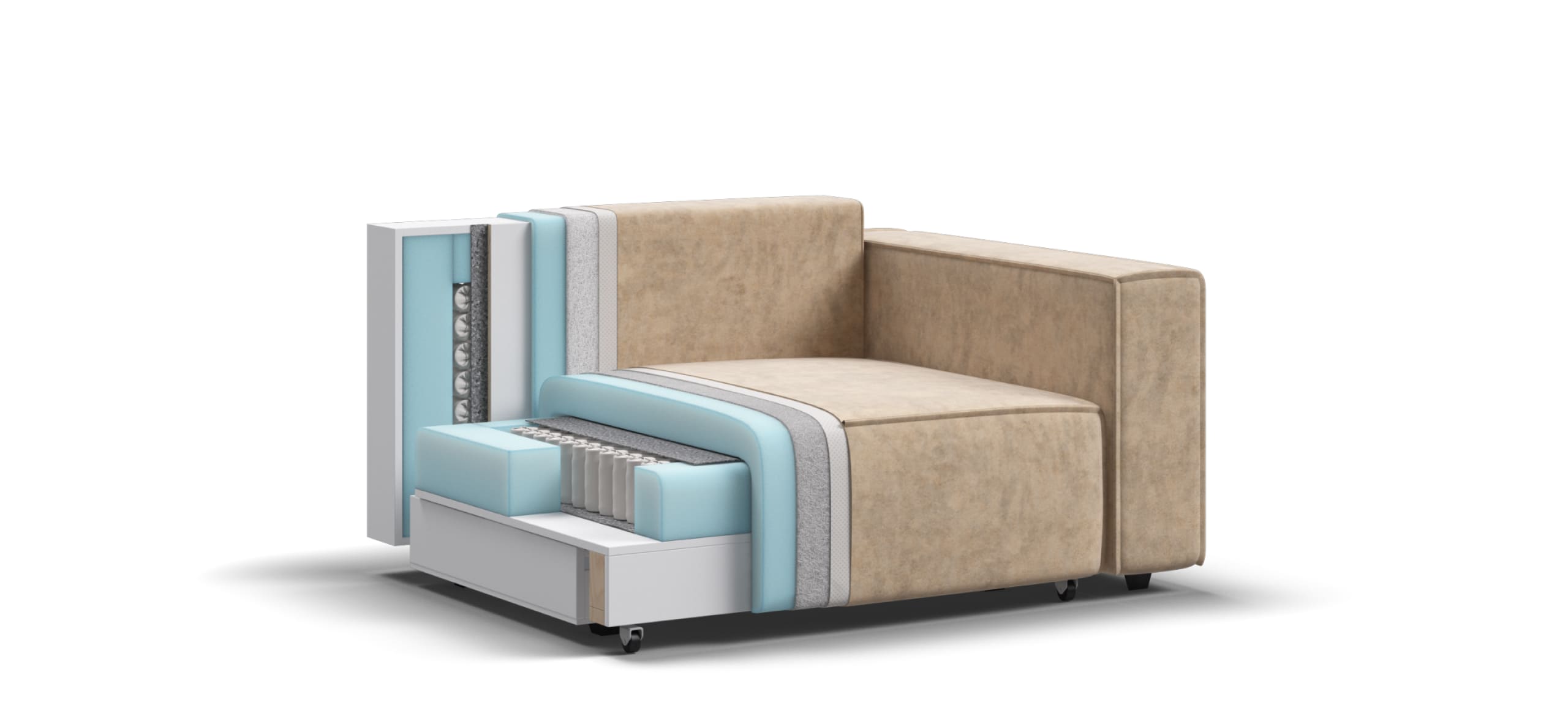 Простой и надежный механизм еврокнижка с легкостью превратит модульную систему в комфортное спальное место.