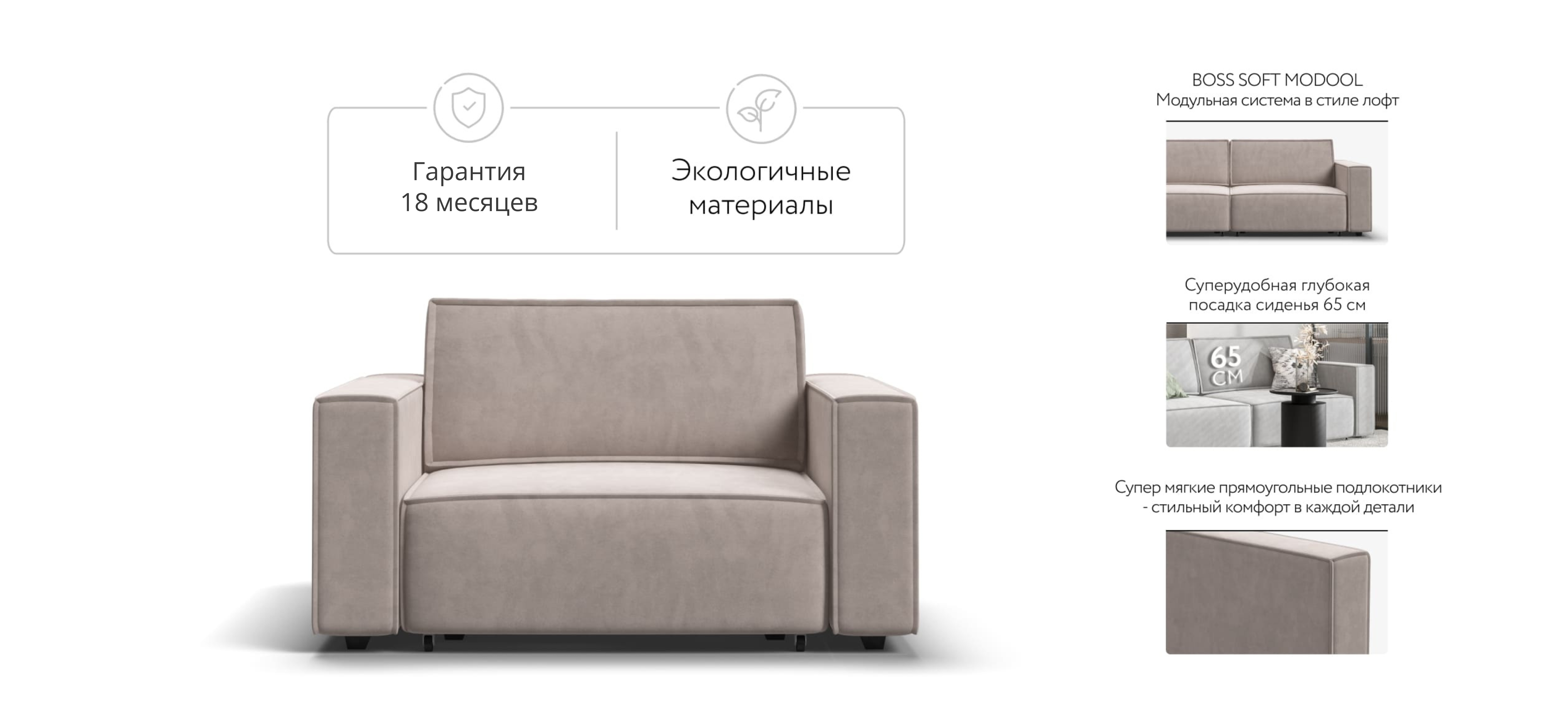 BOSS SOFT Modool – Модульная система в стиле лофт. Сочетание надежности, стиля и функциональности. Суперудобная глубокая посадка и высокоэластичная пена с дополнительным слоем PERIOTEK создадут максимальный комфорт во время отдыха.