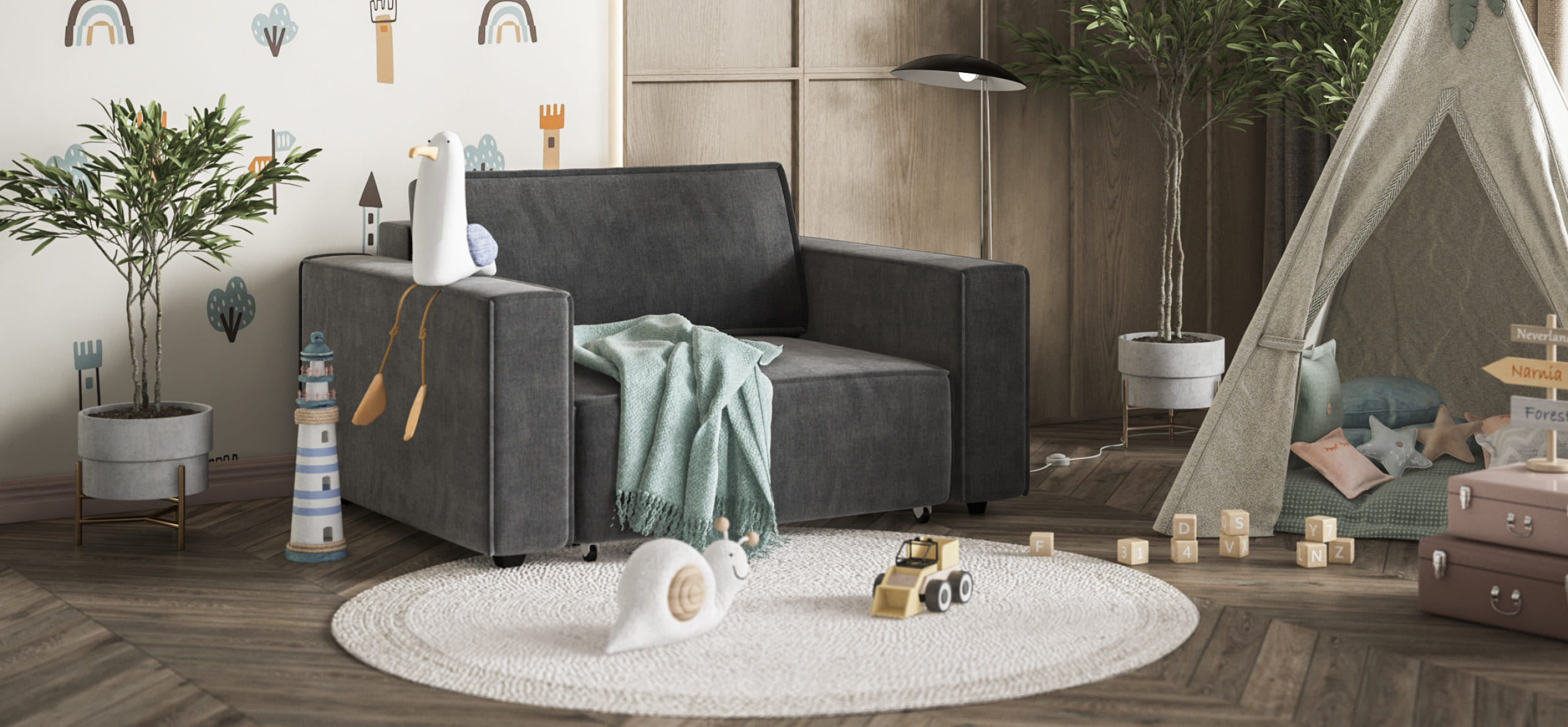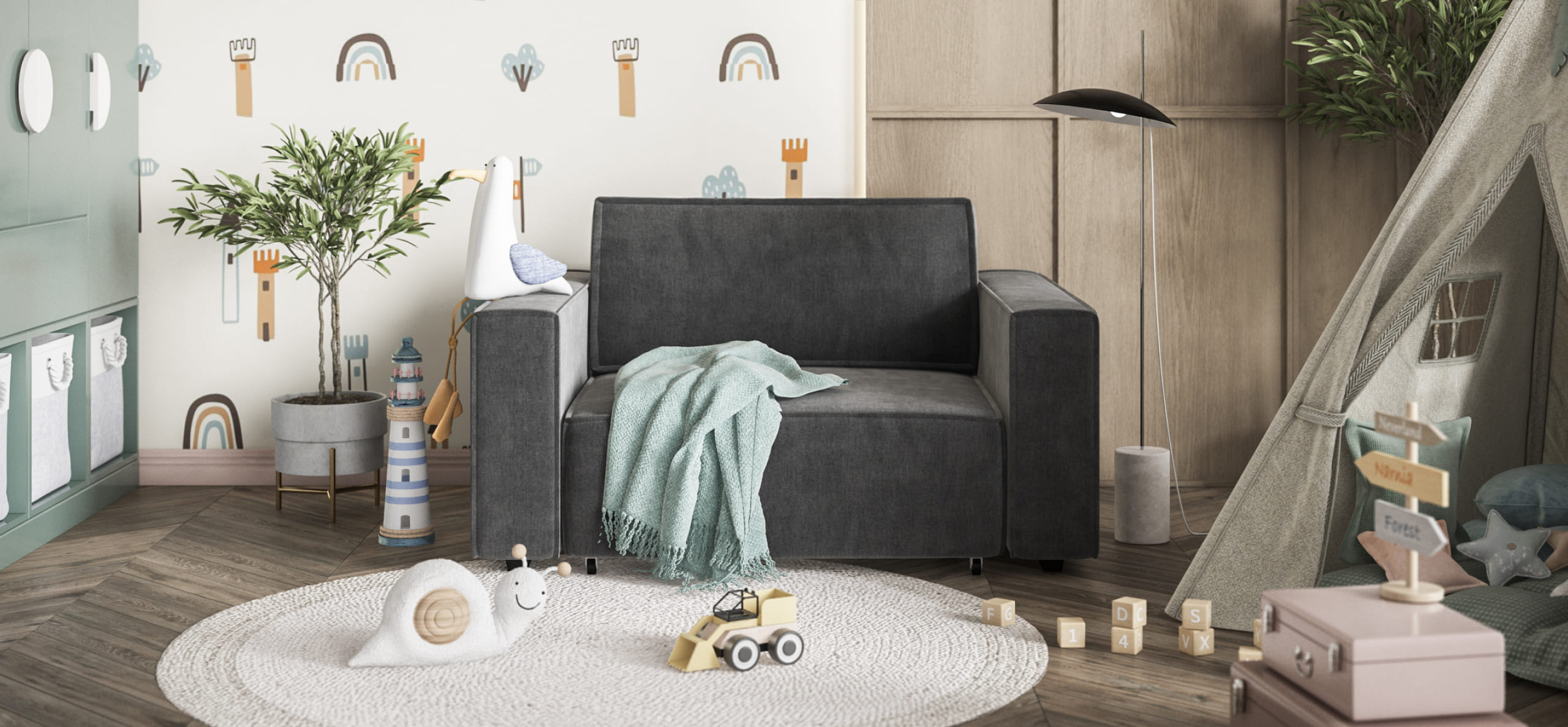 Простой и надежный механизм еврокнижка с легкостью превратит модульную систему в комфортное спальное место.