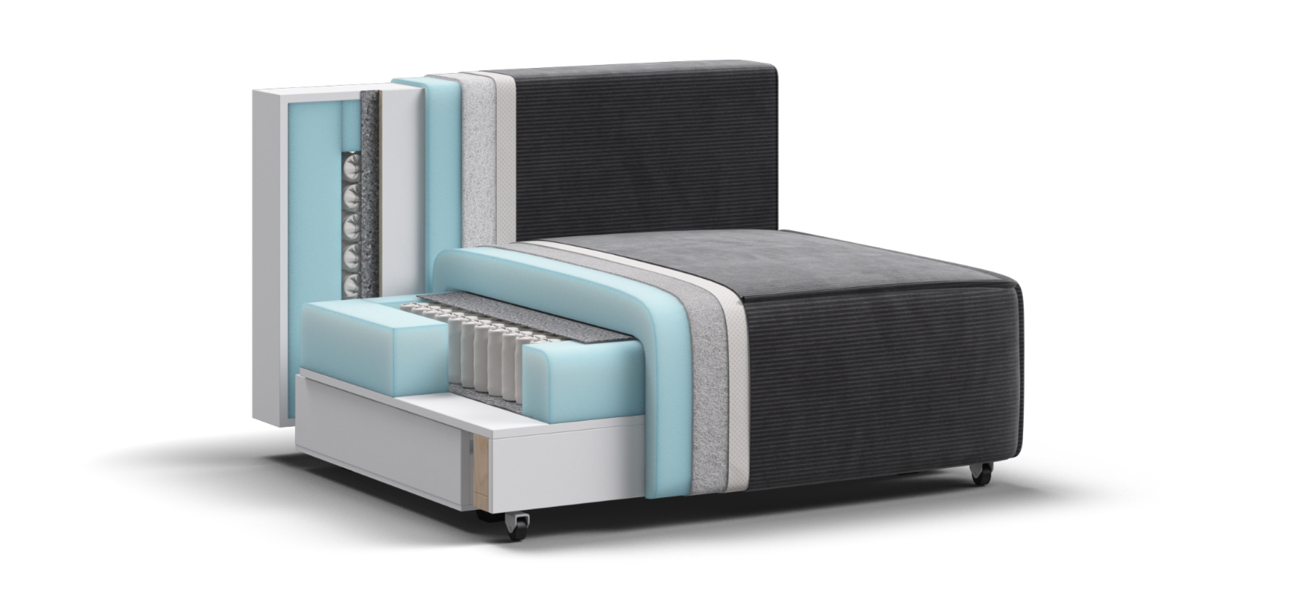 Спальное место BOSS SOFT Modool является частью модульной системы. Супер удобная глубокая посадка сиденья и высокоэластичная пена с дополнительным слоем PERIOTEK создадут максимальный комфорт во время отдыха.