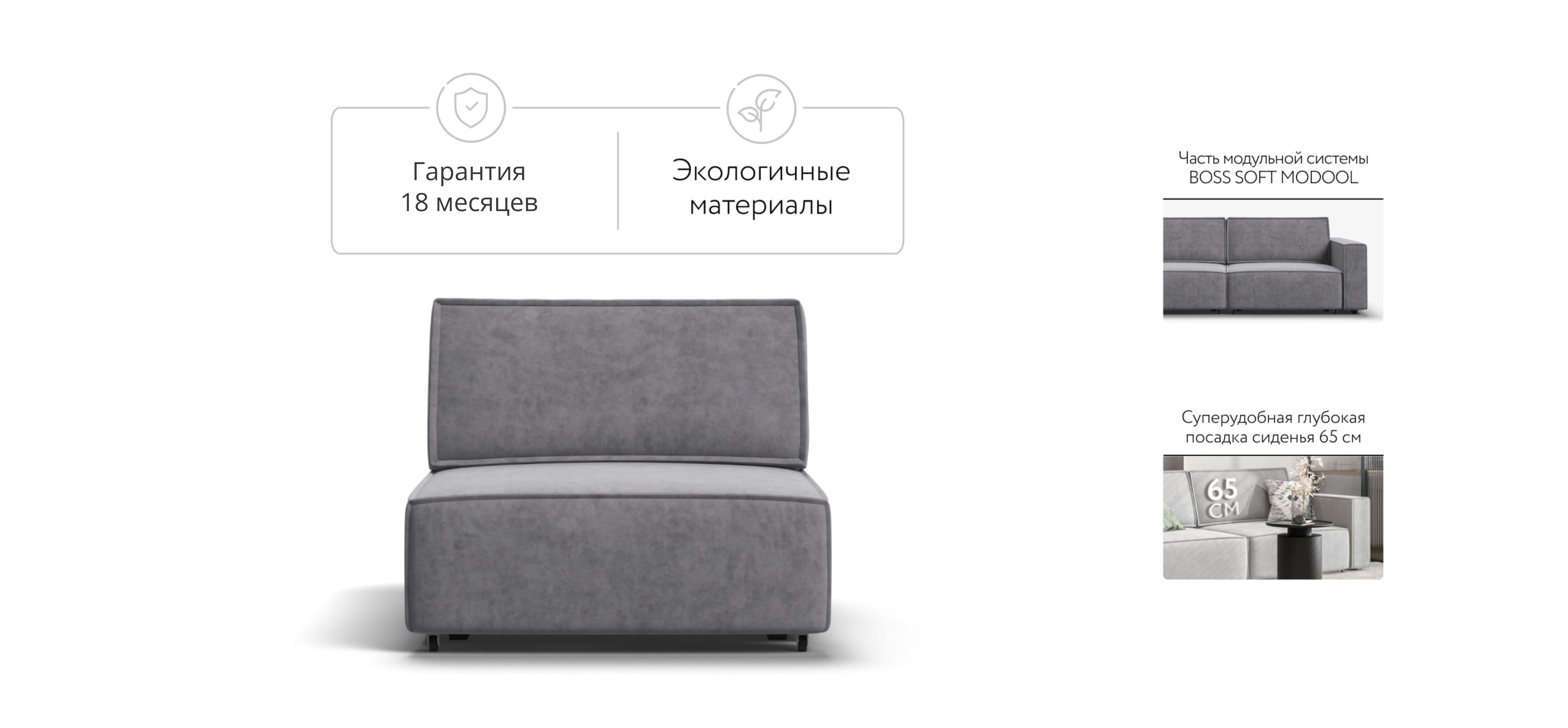 Спальное место BOSS SOFT Modool является частью модульной системы. Суперудобная глубокая посадка сиденья и высокоэластичная пена с дополнительным слоем PERIOTEK создадут максимальный комфорт во время отдыха.