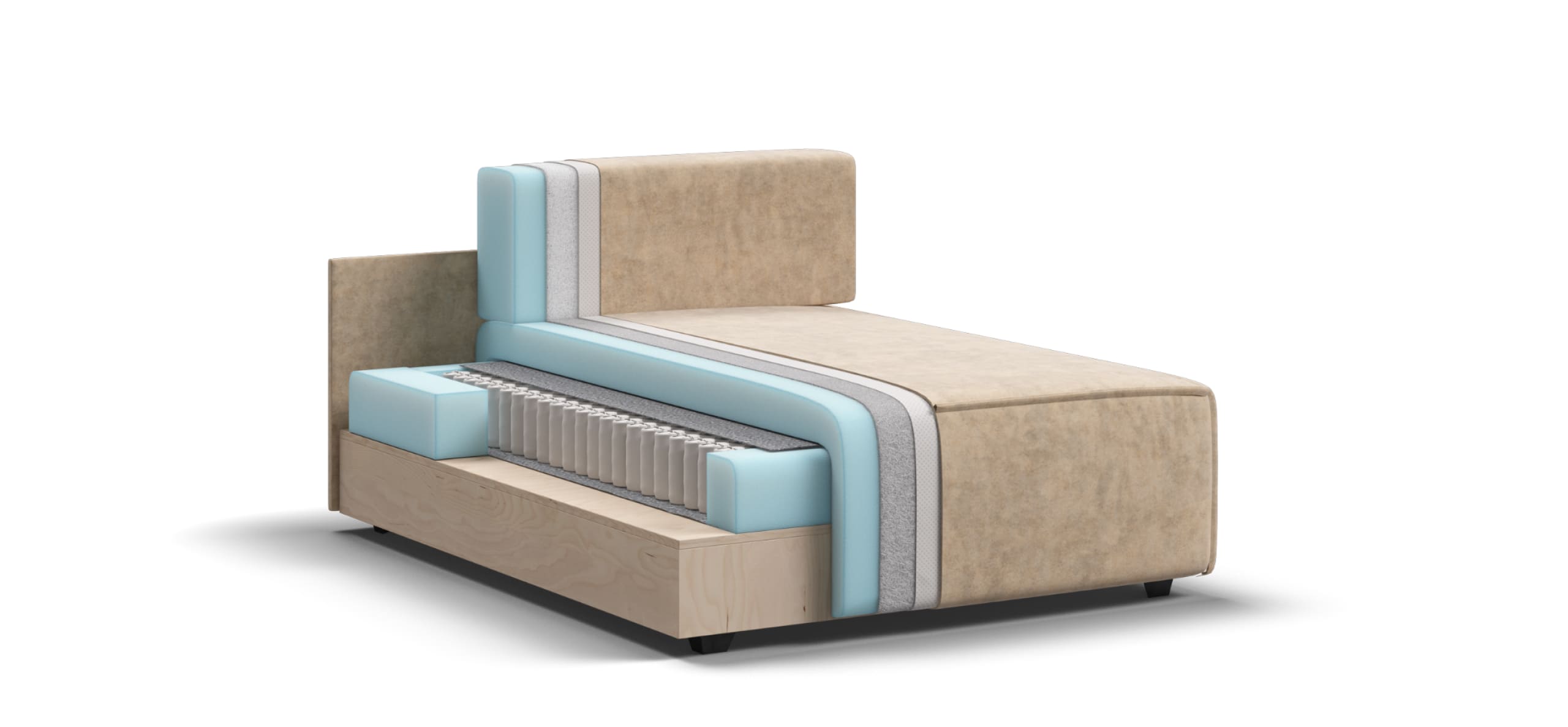 Мягкие набивные подушки, в сочетании холлофайбера и дробленой пены, поддерживают спину, приспосабливаясь под изгибы тела.