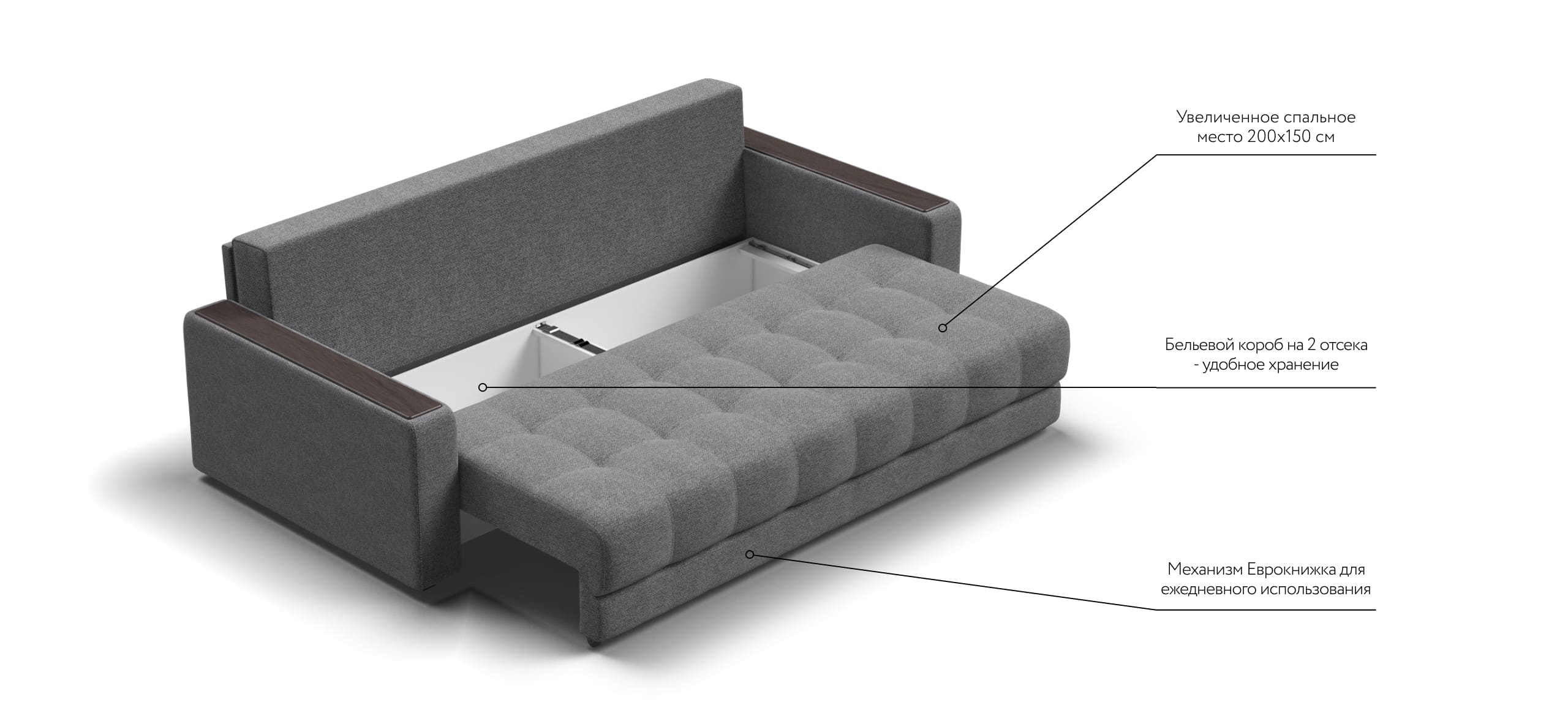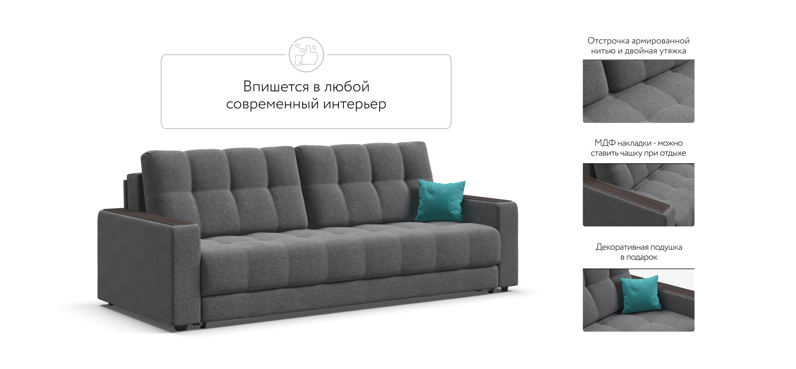 Стильный диван для тех, кто ищет максимальный комфорт. Продуманный до мелочей диван BOSS сочетает в себе надежный каркас, мягкие ткани, многофункциональность и быструю сборку за 1 минуту без инструментов - ощутите комфорт у себя дома!