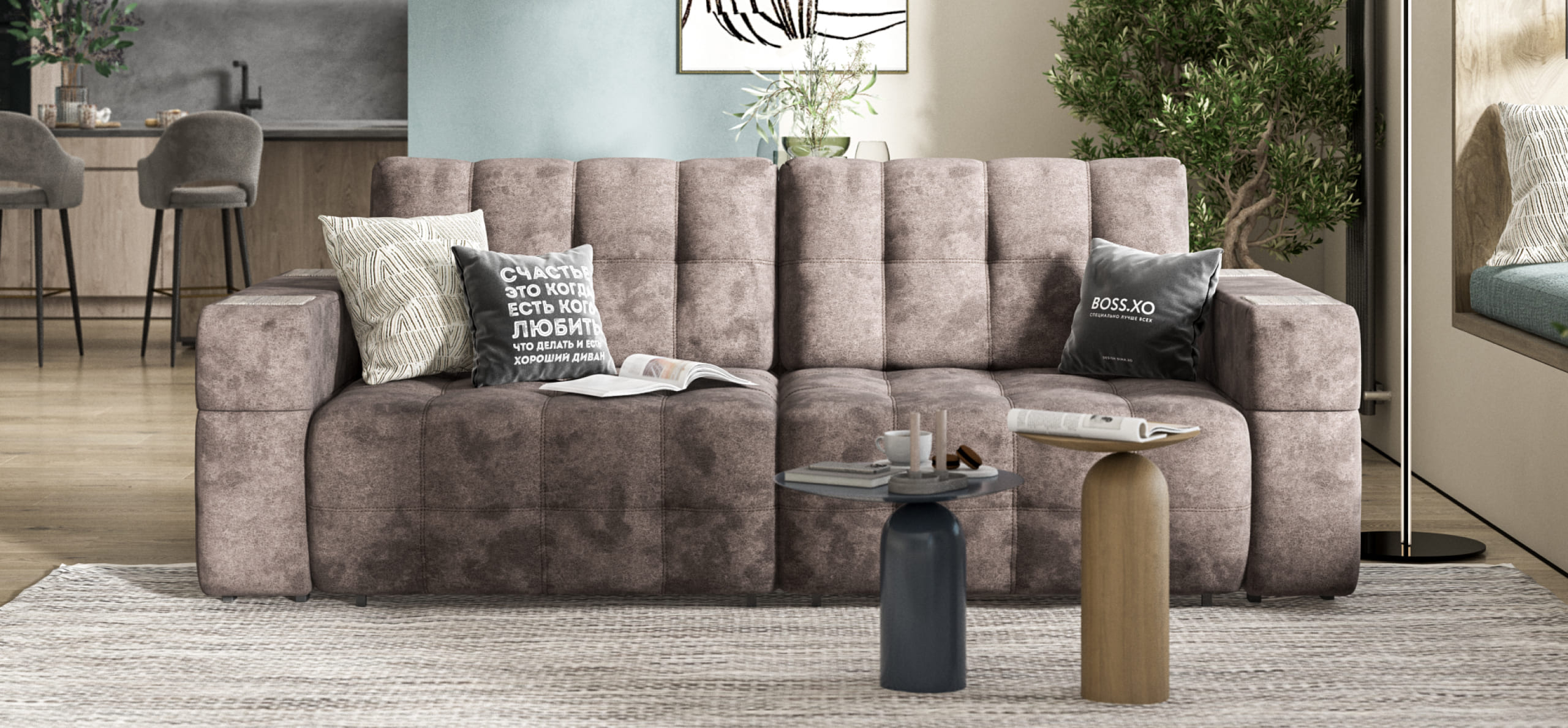 Покупая диван BOSS.XO вы становитесь обладателем уникальных подарков: быстрая зарядка для смартфона, 2 стильных кружки, 2 удобных столика для ноутбука, 2 подушки, комплект запасных накладок на подлокотники B-HAPPY®️, экоручки и средство для чистки BOSS Clean.Характеристики