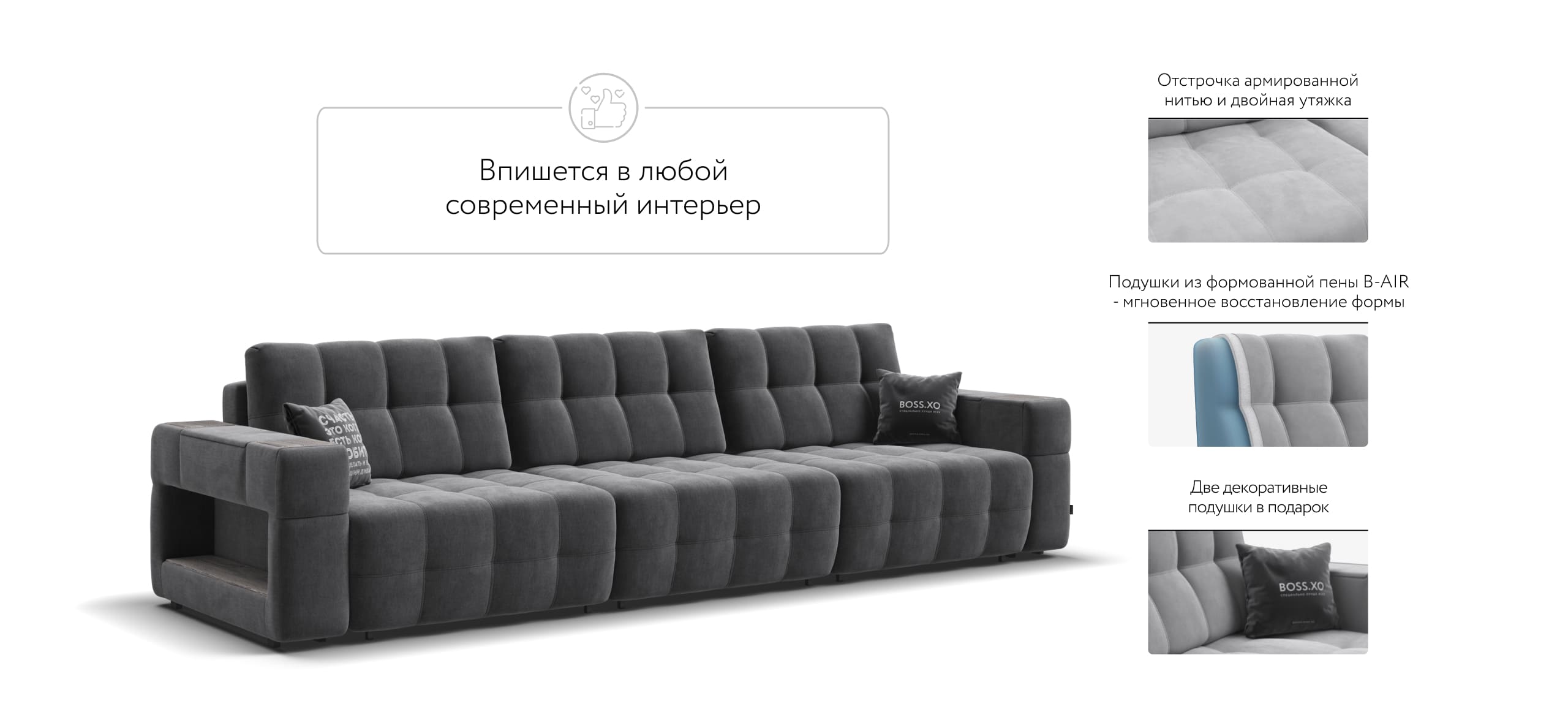 С гордостью представляем новый диван BOSS.XO MAX, разработанный специально для красоты, комфорта и радости в Вашем доме. Это не просто диван - в нём десятки новых функций, которые сделали его центром притяжения для всей Семьи.