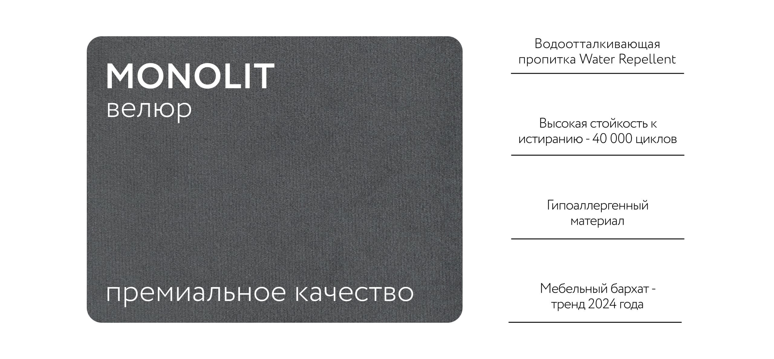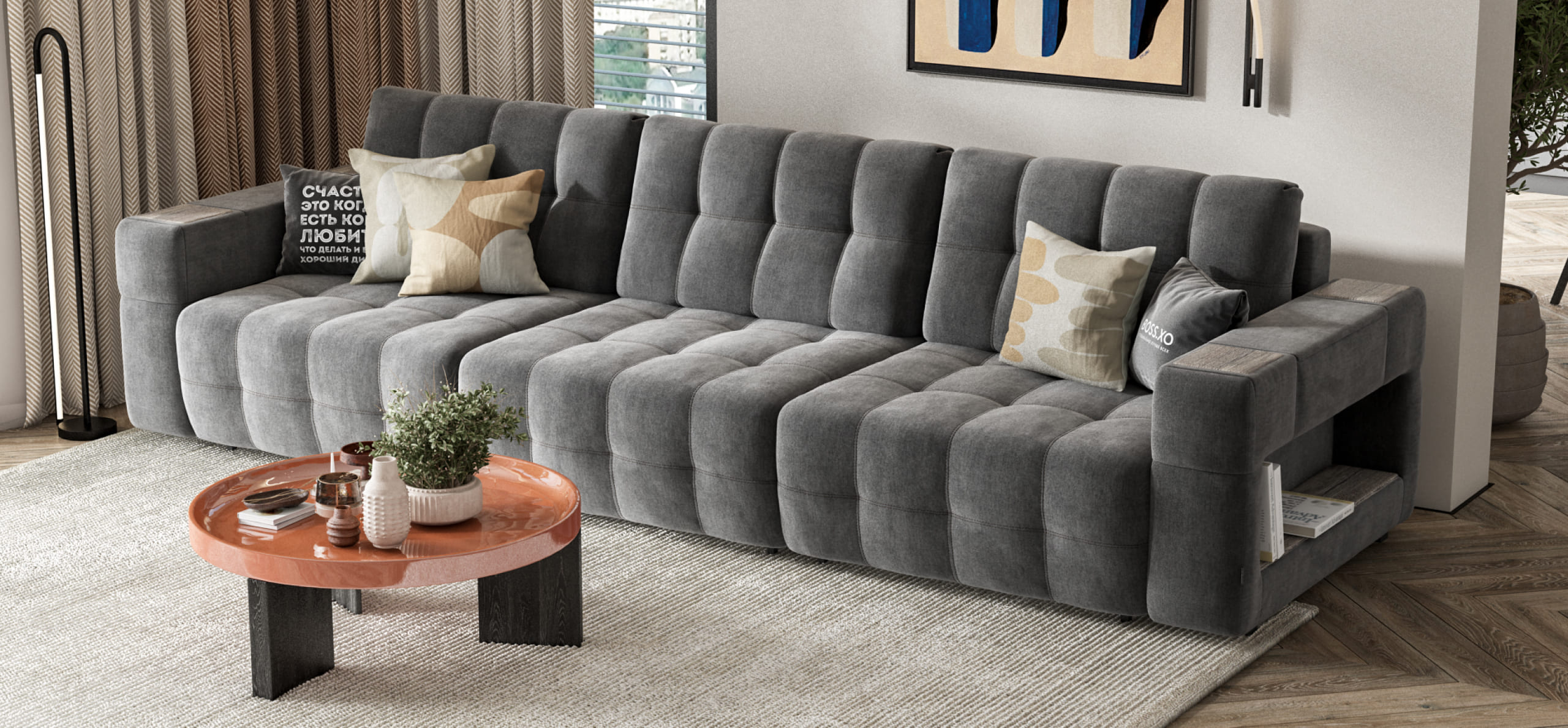 Диван BOSS.XO MAX велюр Monolit серый / WOOD Rock