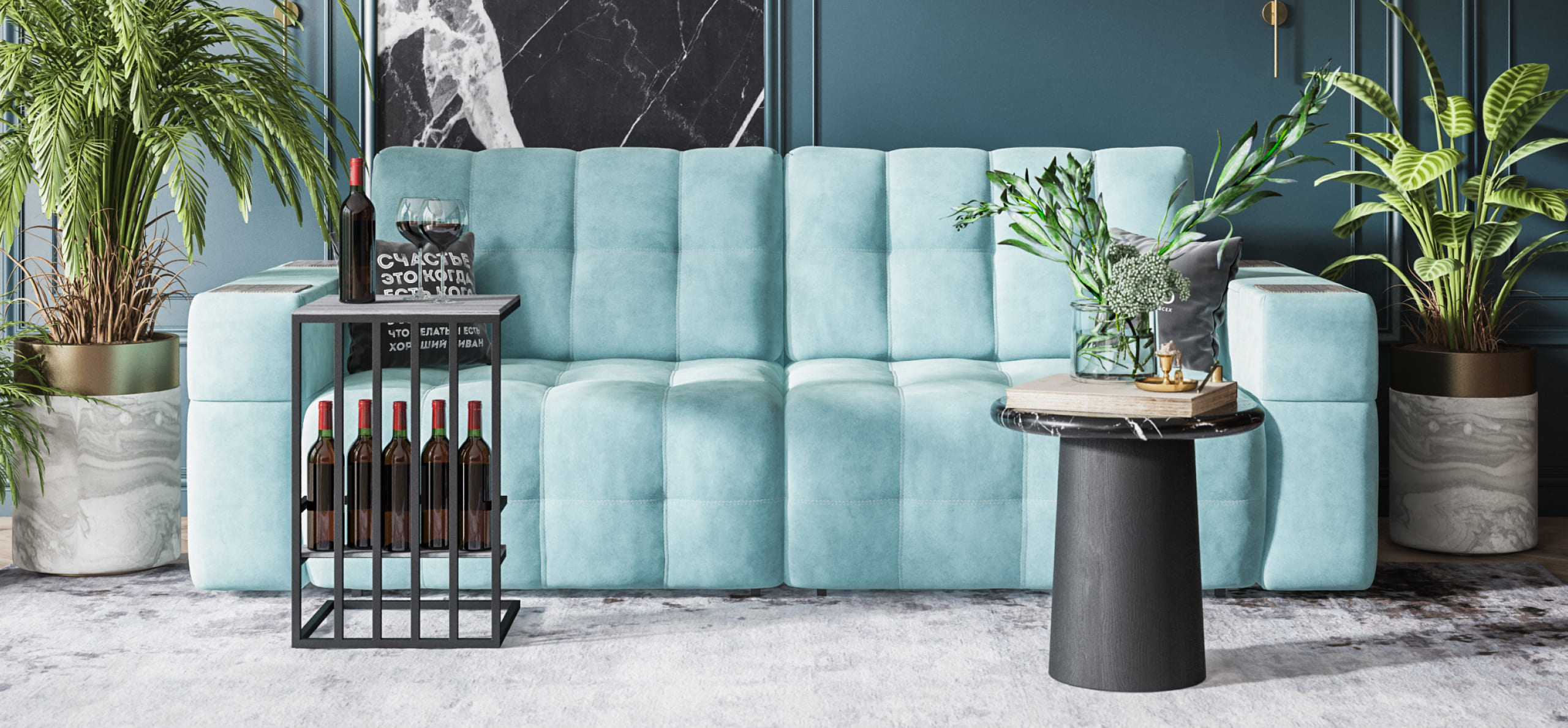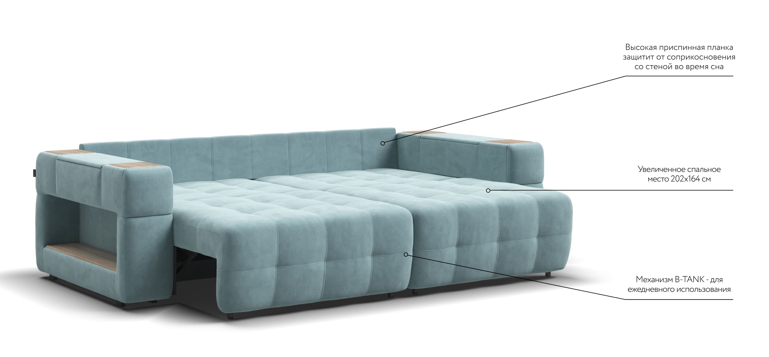 Диван BOSS.XO велюр Monolit аква / WOOD Snow