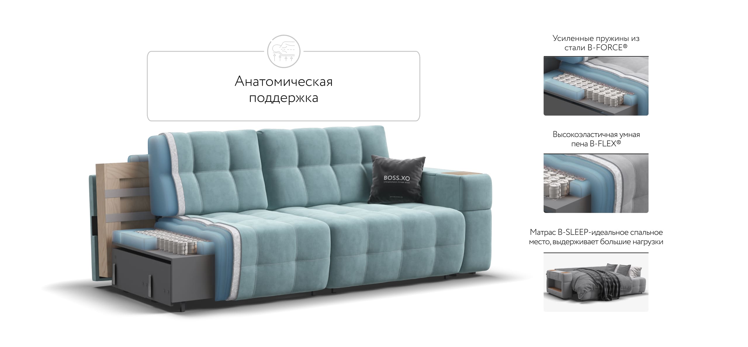 BOSS.XO по своим характеристикам лучше многих диванов с ценой от 300 тысяч рублей.