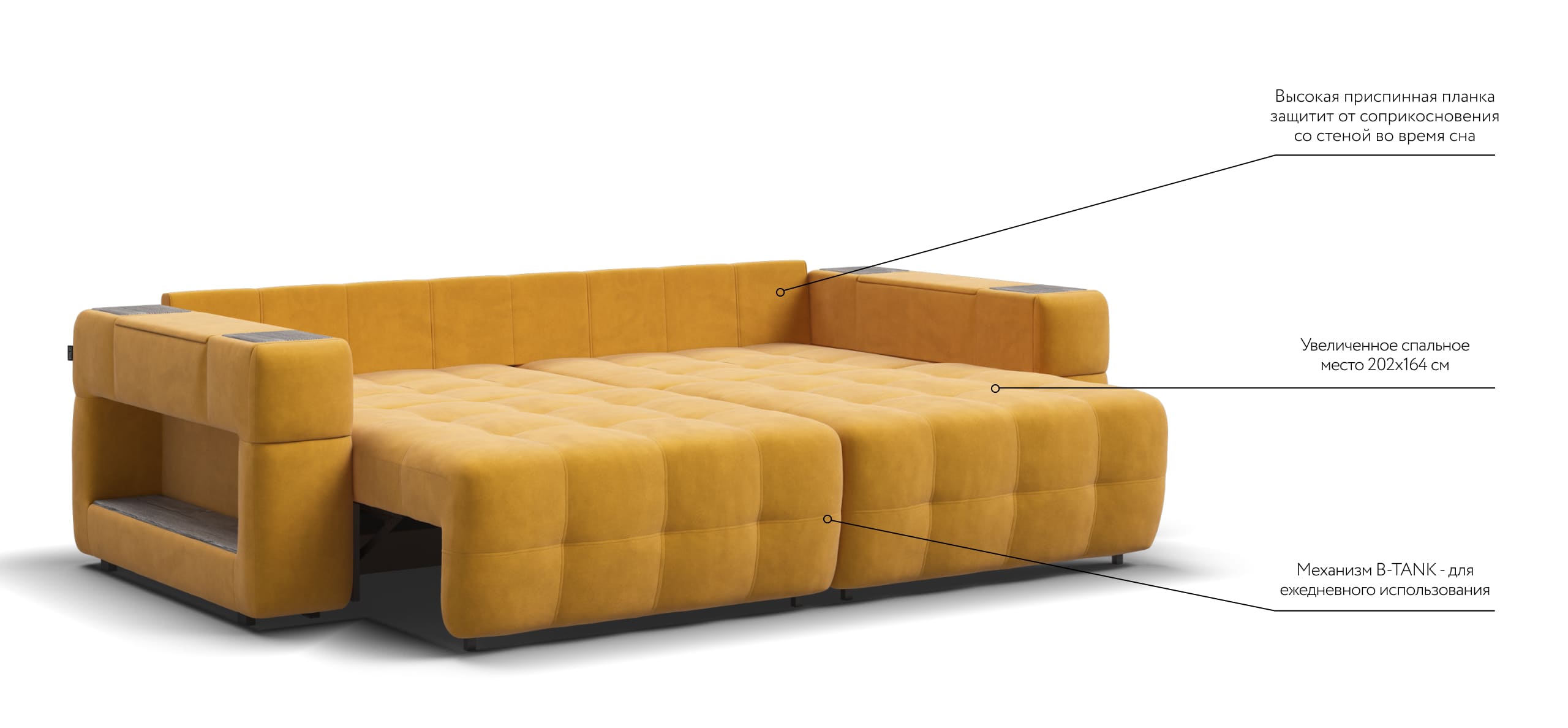 Покупая диван BOSS.XO вы становитесь обладателем уникальных подарков: быстрая зарядка для смартфона, 2 стильных кружки, 2 удобных столика для ноутбука, 2 подушки, комплект запасных накладок на подлокотники B-HAPPY®️, экоручки и средство для чистки BOSS Clean.