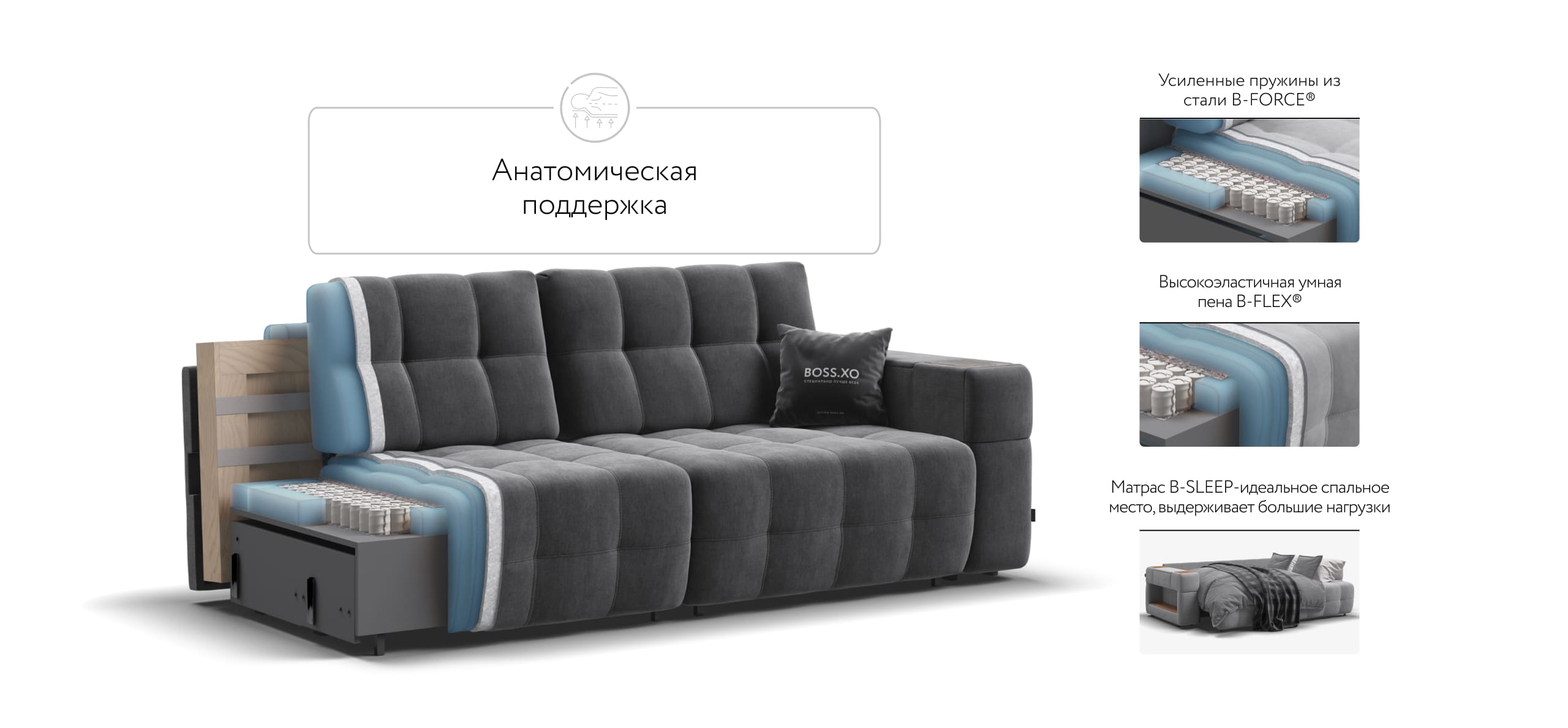 BOSS.XO по своим характеристикам лучше многих диванов с ценой от 300 тысяч рублей.