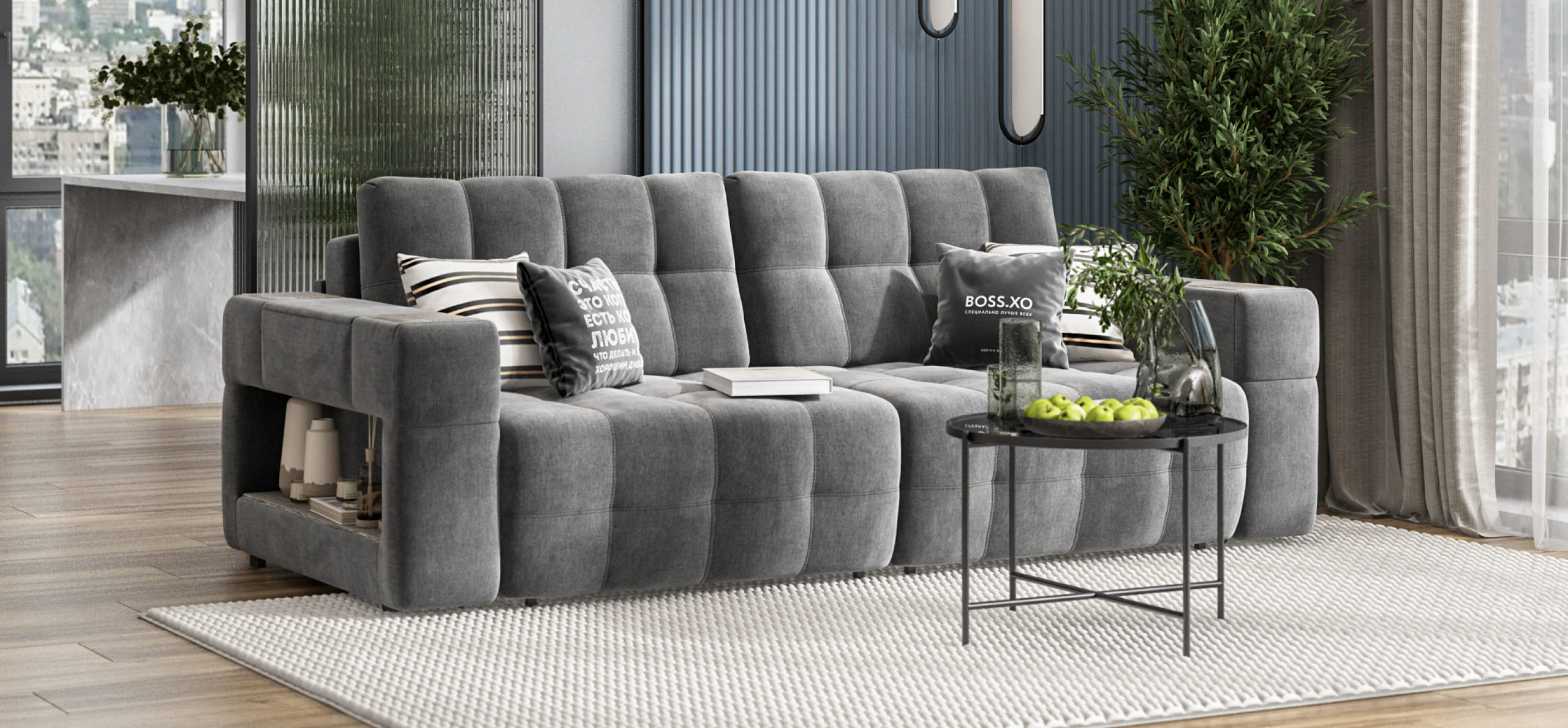 С гордостью представляем новый диван BOSS.XO, разработанный специально для красоты, комфорта и радости в Вашем доме. Это не просто диван - в нём десятки новых функций, которые сделали его центром притяжения для всей Семьи.