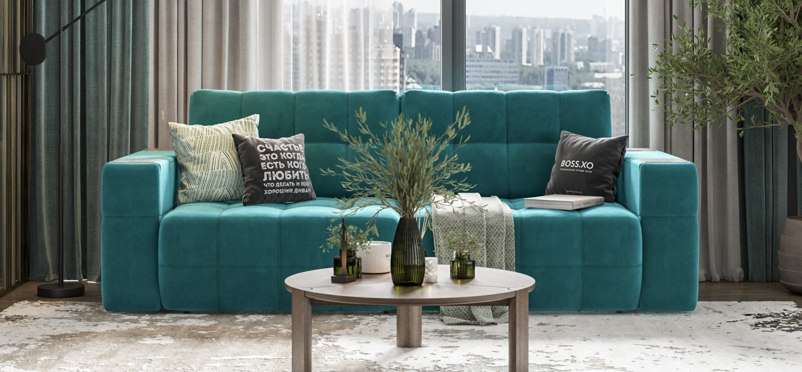 Покупая диван BOSS.XO вы становитесь обладателем уникальных подарков: быстрая зарядка для смартфона, 2 стильных кружки, 2 удобных столика для ноутбука, 2 подушки, комплект запасных накладок на подлокотники B-HAPPY®️, экоручки и средство для чистки BOSS Clean.Характеристики