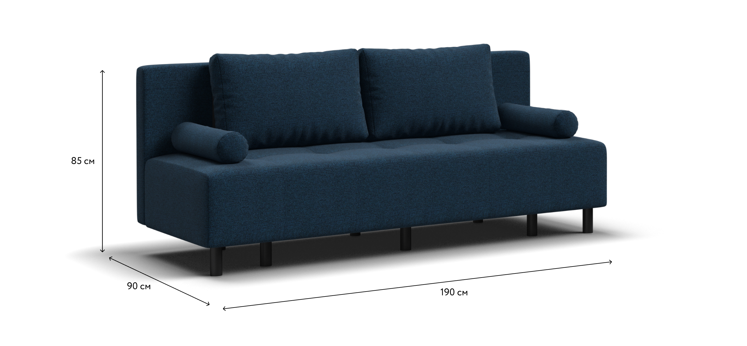 Черные матовые опоры из высокопрочной стали обеспенчивают надежность конструкции и устойчивость дивана