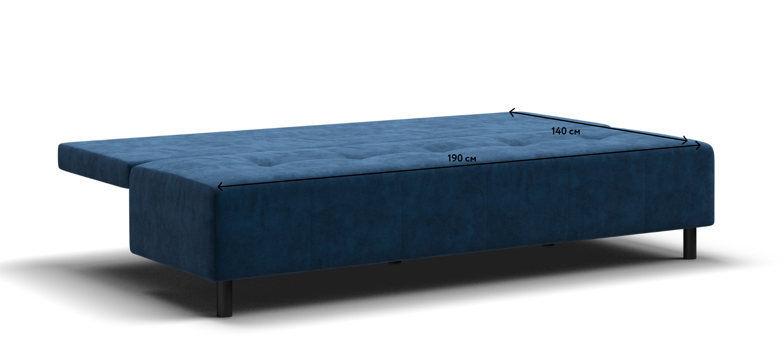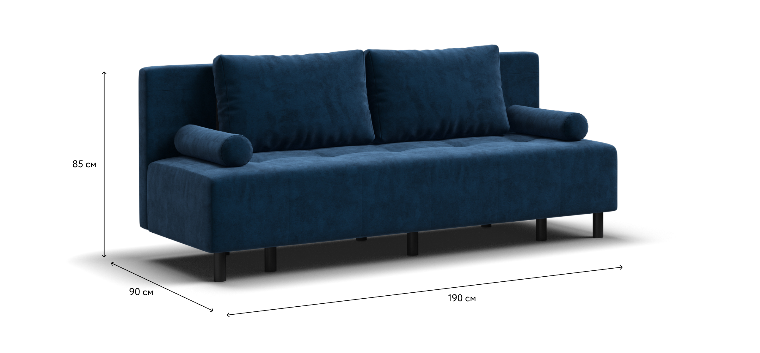 Черные матовые опоры из высокопрочной стали обеспенчивают надежность конструкции и устойчивость дивана