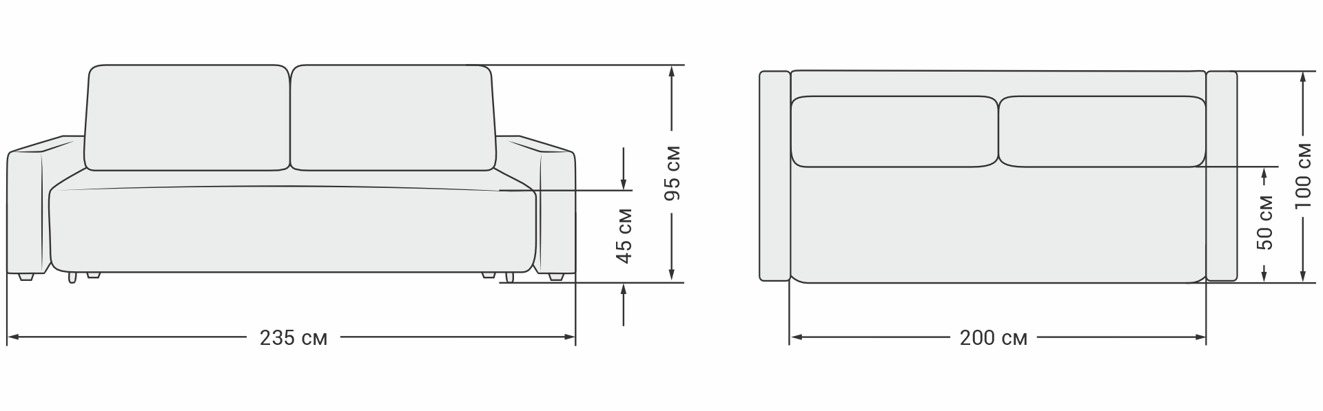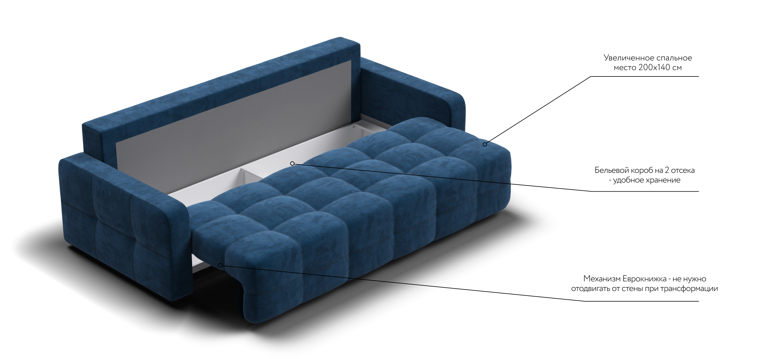 Простой и надежный механизм еврокнижка позволяет ставить диван вплотную к стене.