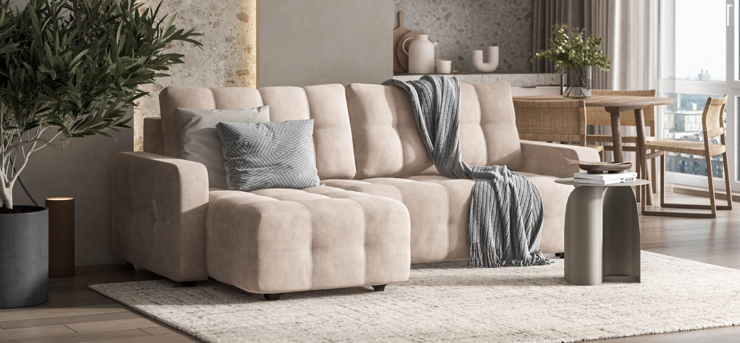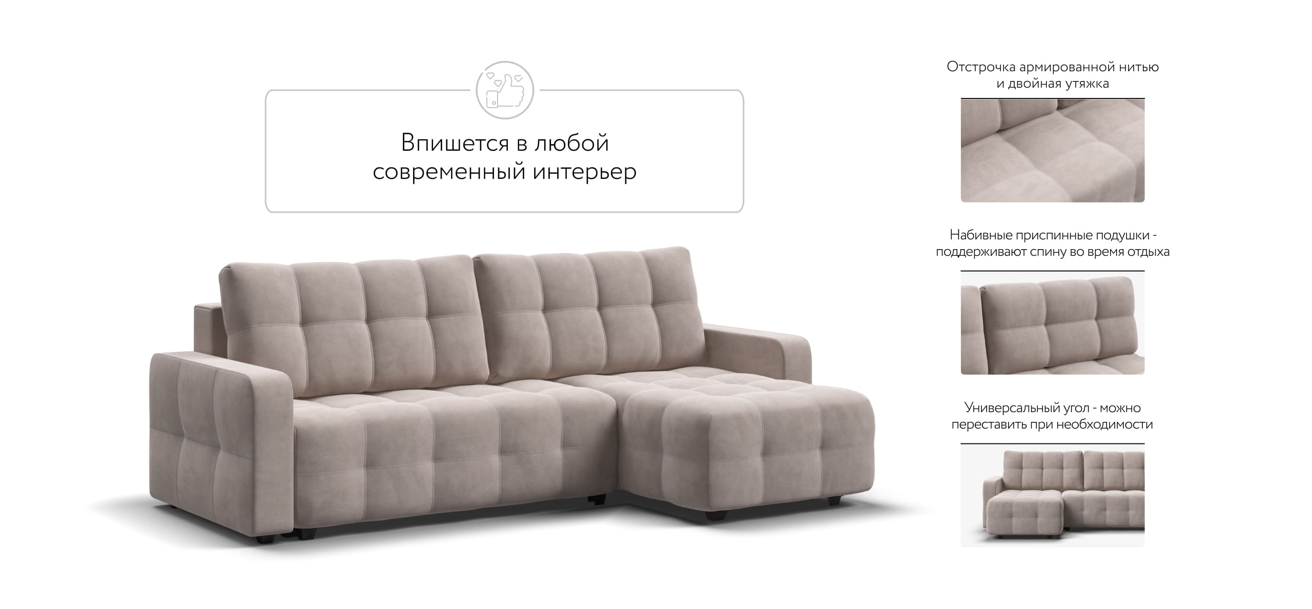 Угловой диван Dandy Euro - с ним так легко создать настоящий уют и домашний комфорт. Мягкие приспинные подушки и независимый пружинный блок в основании обеспечат максимальный комфорт во время отдыха.