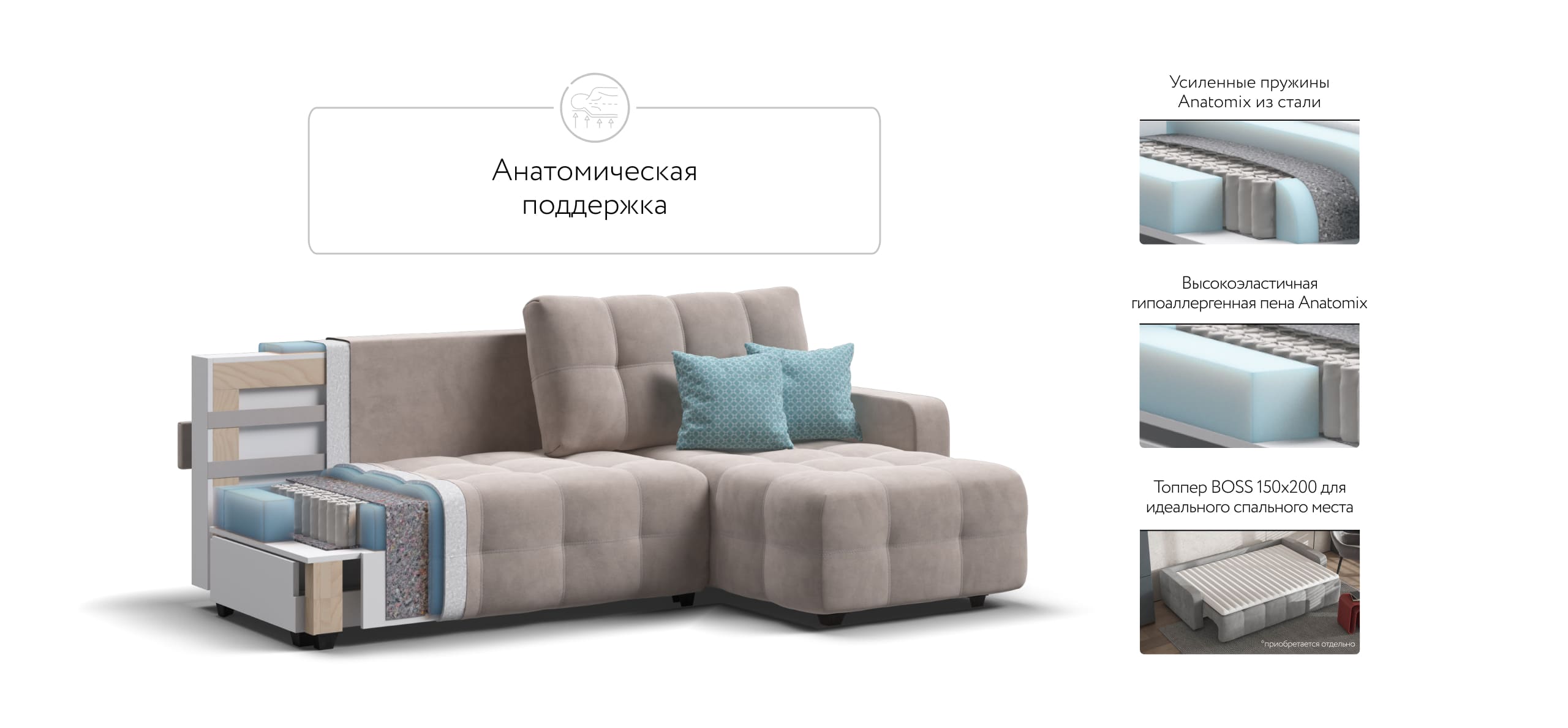 Независимые пружины и пена Anatomix – оптимальная плотность для комфортного сна.