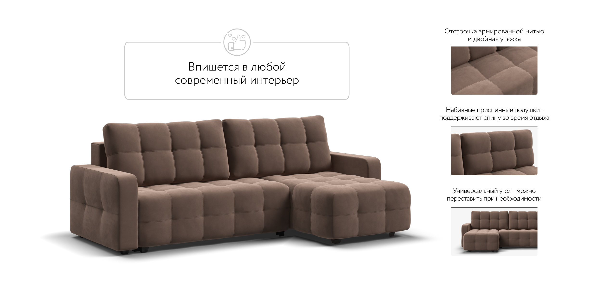 Угловой диван Dandy euro SE велюр Monolit мокко