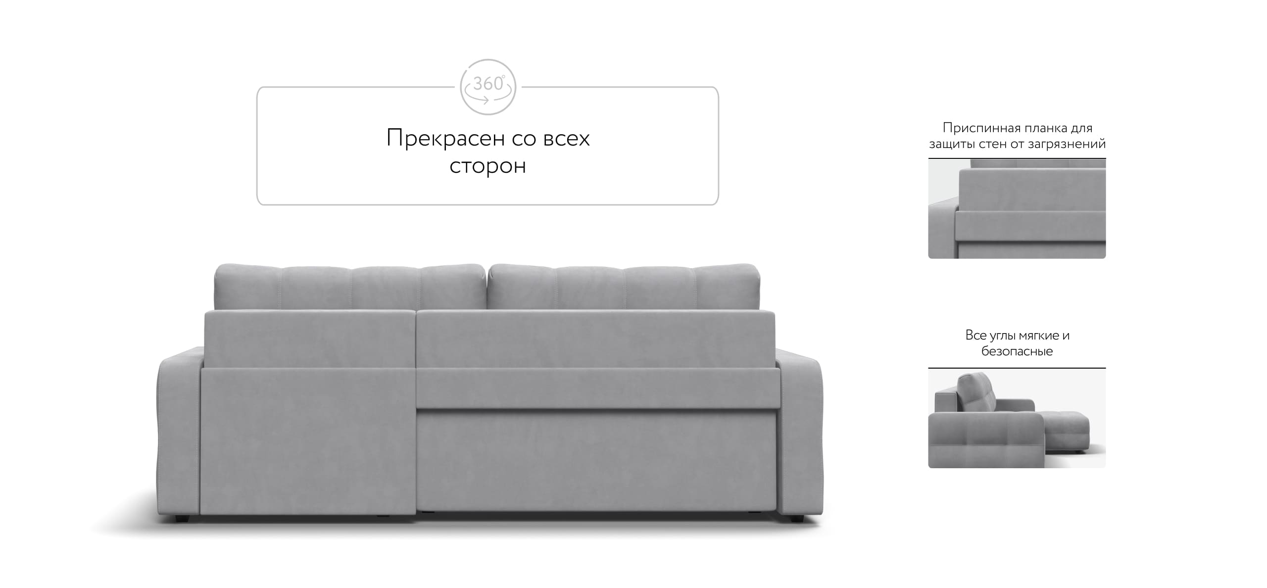 Угловой диван Dandy euro SE велюр Monolit сталь
