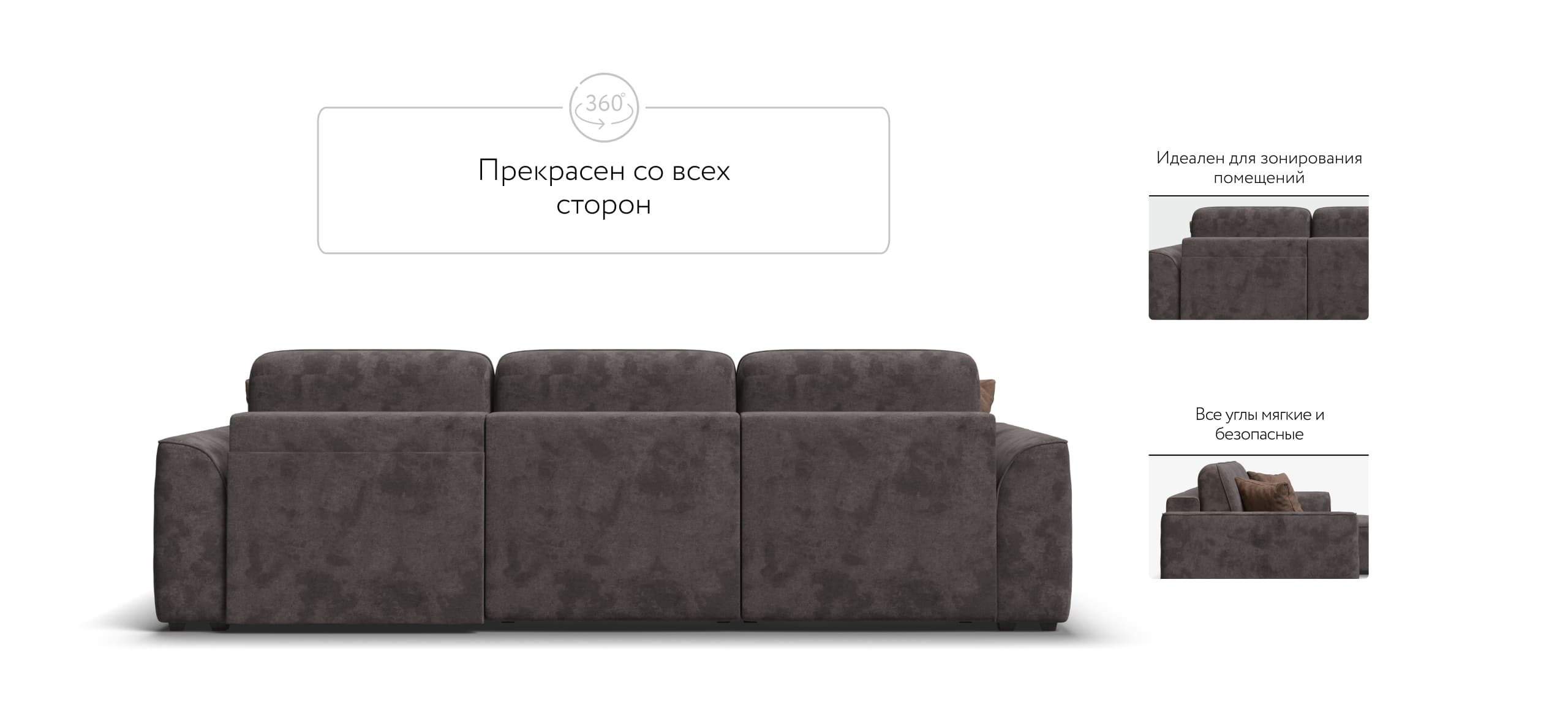 Комфортная посадка, скругленные линии, объемные подушки - диван, который наполнит ваш дом уютом и комфортом. Универсальный угол позволит Вам самостоятельно выбрать его положение при сборке, а каждое посадочное место можно выдвинуть вперед и получить П-образную форму дивана, на котором с комфортом разместится большая компания. А в разложенном виде диван превращается в комфортное спальное место.