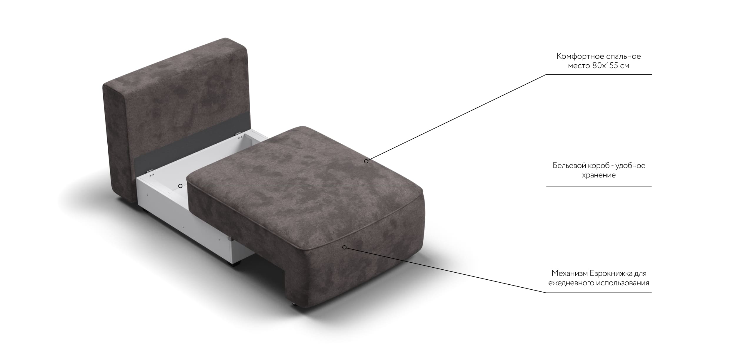 Благодаря простому и надежному механизму еврокнижка модульная система с легкостью превратится в комфортное спальное место.