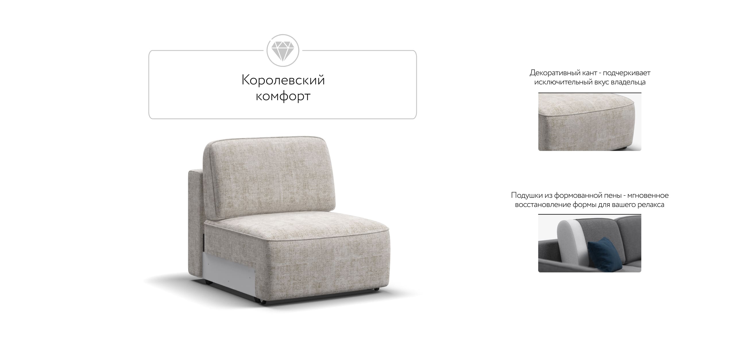 Спальное место KING MODOOL является частью модульной системы. Суперудобная глубокая посадка сиденья и высокоэластичная пена ELASTIC Foam с дополнительным слоем PERIOTEK создадут максимальный комфорт во время отдыха.