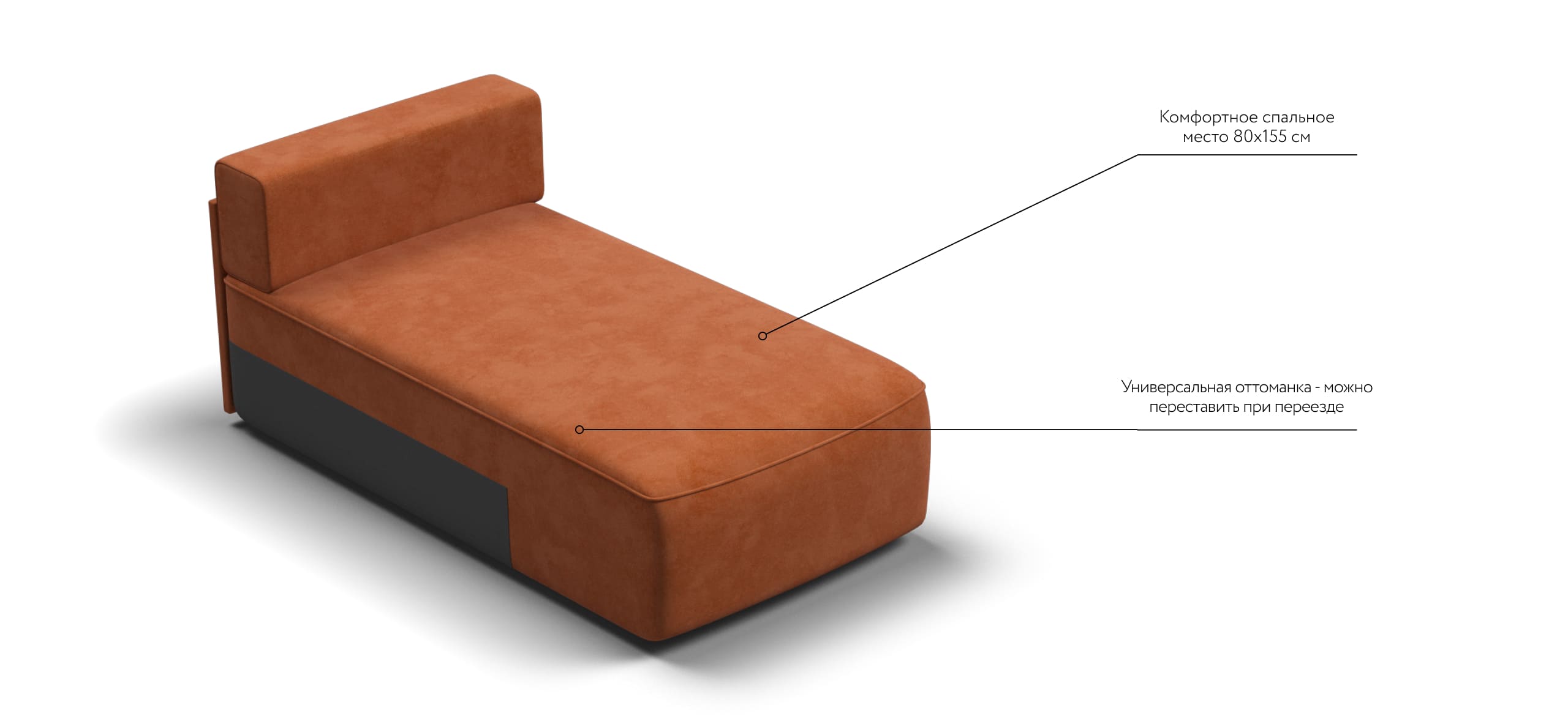 Оттоманка KING MODOOL является частью модульной системы. Оттоманка универсальная и может быть установлена с любой стороны модульной системы. Мягкие подушки из формованной пены и высокоэластичная пена ELASTIC Foam с дополнительным слоем PERIOTEK создадут максимальный комфорт во время отдыха. Благодаря глубокой посадке шезлонга 110см, можно отдыхать полулежа не раскладывая диван