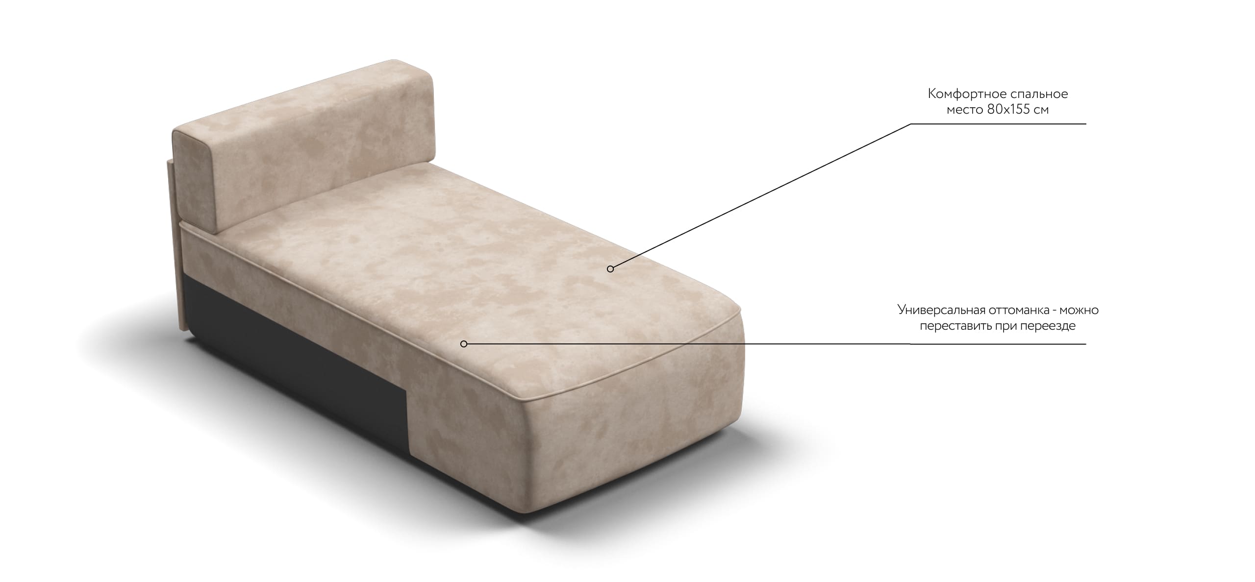 Оттоманка KING MODOOL является частью модульной системы. Оттоманка универсальная и может быть установлена с любой стороны модульной системы. Мягкие подушки из формованной пены и высокоэластичная пена ELASTIC Foam с дополнительным слоем PERIOTEK создадут максимальный комфорт во время отдыха. Благодаря глубокой посадке шезлонга 110см, можно отдыхать полулежа не раскладывая диван