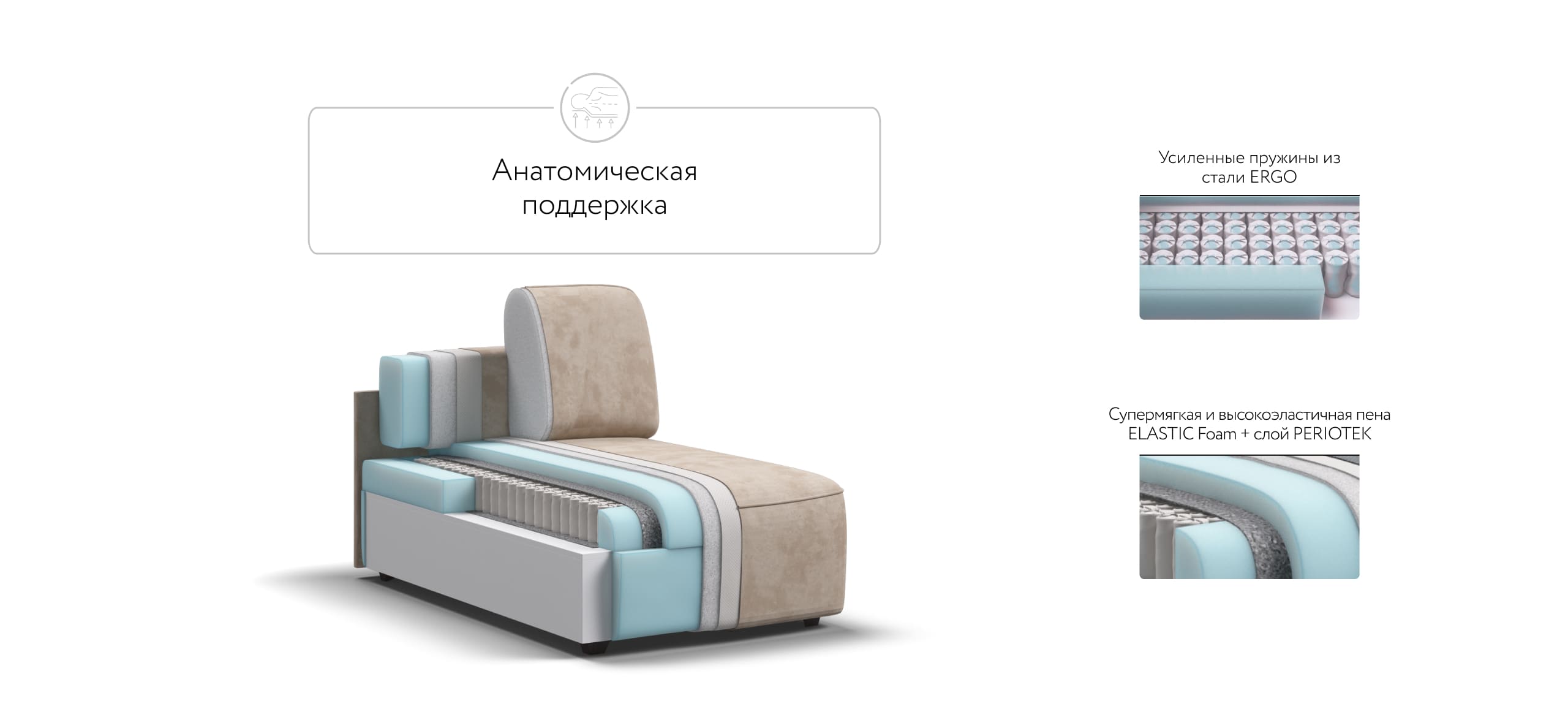 Высокоэластичная пена ELASTIC Foam быстро восстанавливает форму, а Слой PERIOTEK придаёт пышность и упругость